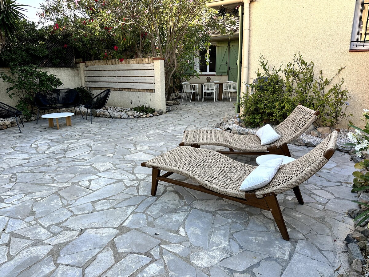 La maison se trouve à seulement 2 min à pied la plage, immense bande de sable fin de 9 km, idéale pour les balades, baignades et instants de détente face à la Méditerranée Vous allez adorer : • Grand jardin privé avec arbres fruitiers, transats, coin repas ombragé • Intérieur apaisant lumineux • Climatisation • Plain pied • Parking sur place • Animaux bienvenus • Tout à pied : plage, restos, marchés • Cuisine neuve, moderne, lavelinge Une maison rénovée avec soin, pensée pour notre famille