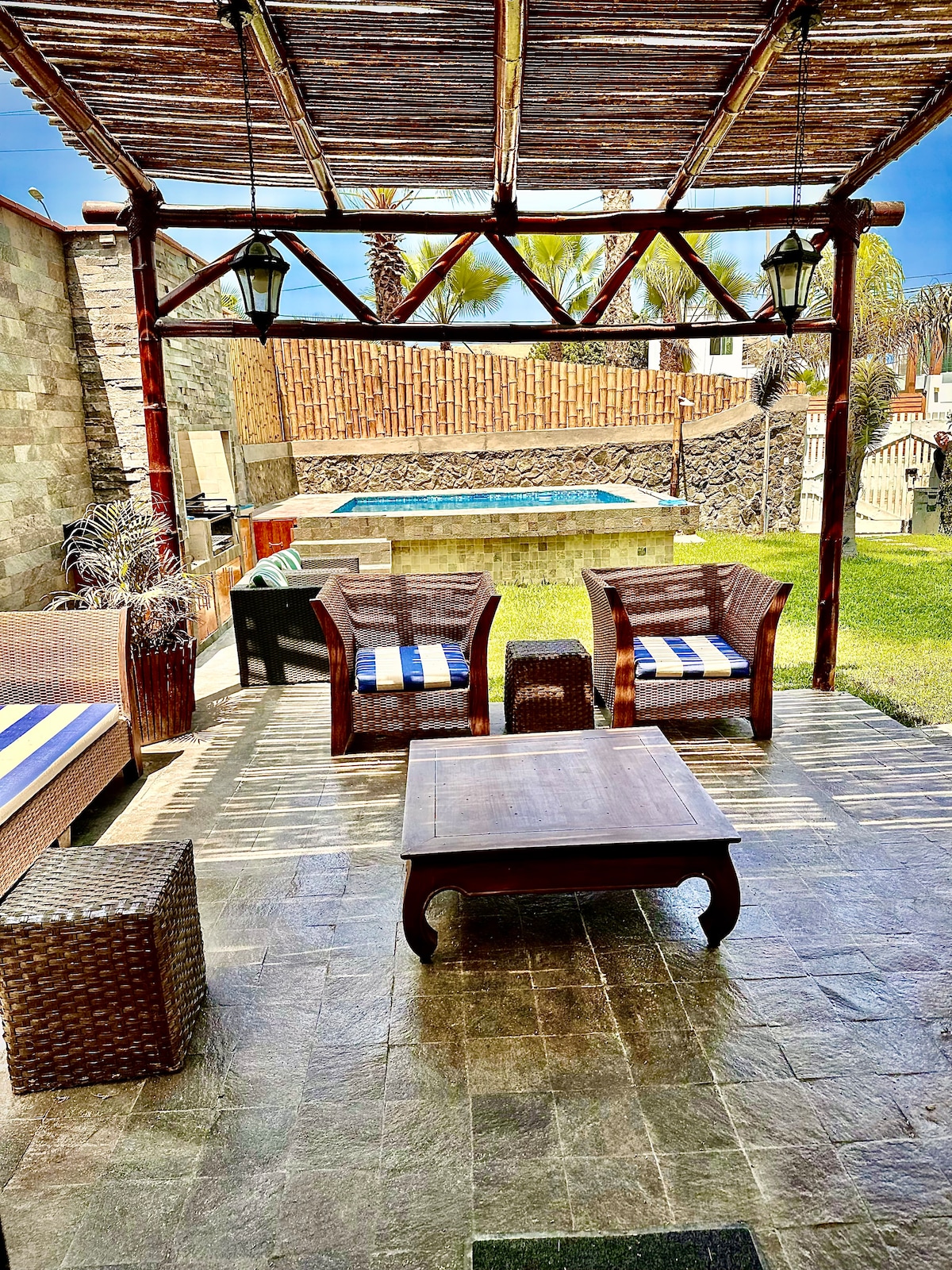 大海、泳池、陽光!在這個安靜的地方與全家人一起放鬆身心。別墅設有電視、冰箱、有線電視等所有設施。燒烤區域設有冷吧和小型電動廚房。公寓設有公共照明(Luz del Sur)、水和水箱,讓您在住宿期間感到舒適。
