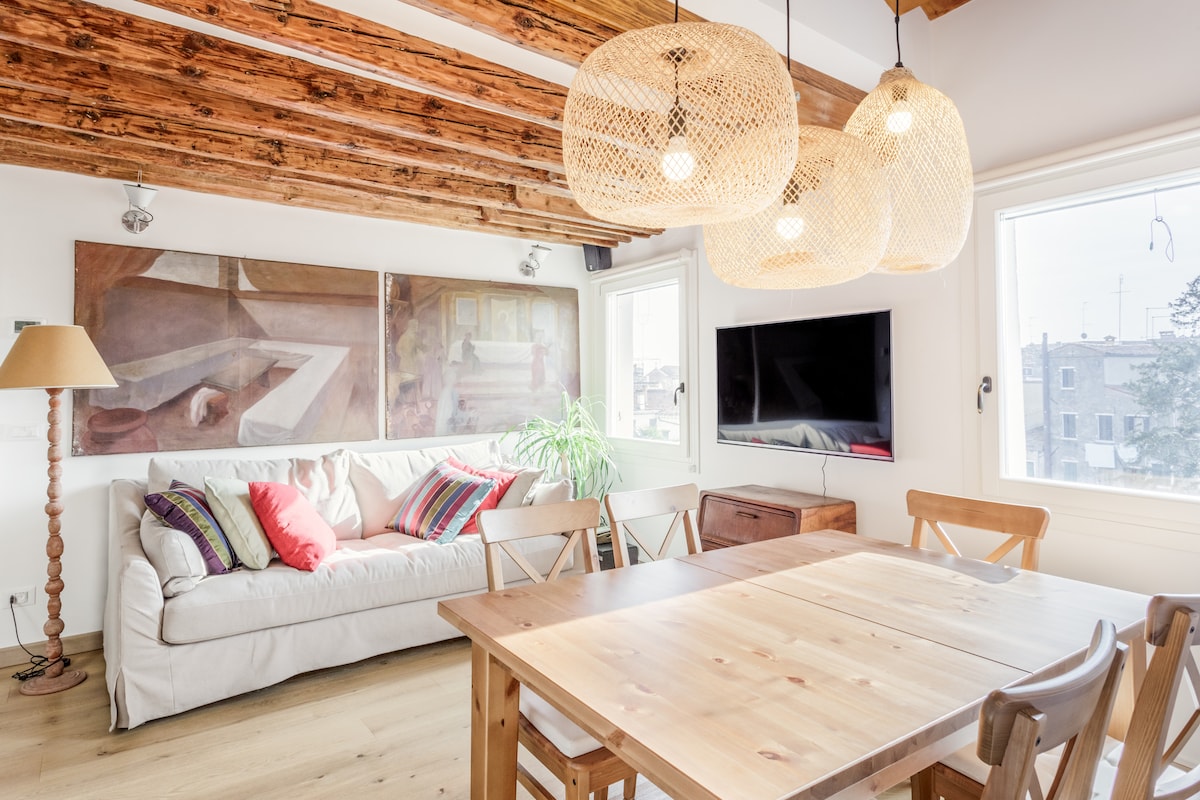 Bright apartment on the 1st floor, 10 minutes walking from the station and a step away from the Jewish Ghetto, close to the city center but at the same time out of the crowd. Fondamenta Ormesini offers the opportunity to sip an aperitif in one of the typical Venetian bars while enjoying the sunset. 50sqm composed of double bedroom, large bathroom, living area with kitchen and sofa bed; heating, a/c, excellent wifi. On the ground floor private room with washer/dryer. PLEASE SEE HOUSE RULES