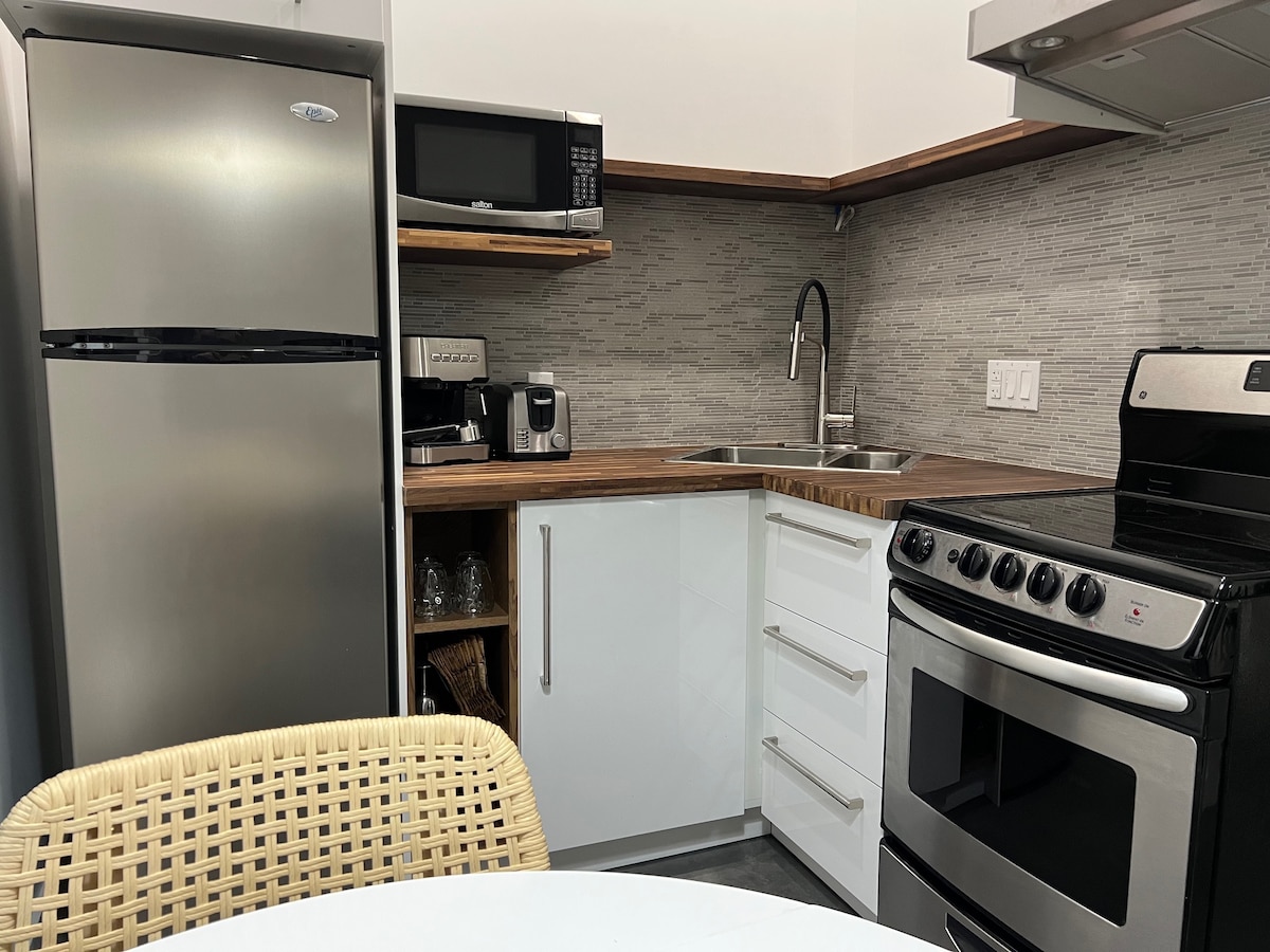 整套公寓,有一間臥室和陽台,位於加斯佩市中心。 新近翻修並重新粉刷。 配備全新家具和設備。 步行即可抵達所有服務設施:餐廳和酒吧、購物中心、學院、海灣沿線等。 廚房配備烹飪所需的一切:廚具、餐具和器皿。 WiFi 速度快,包含停車位。 非常適合情侶或出差人士。