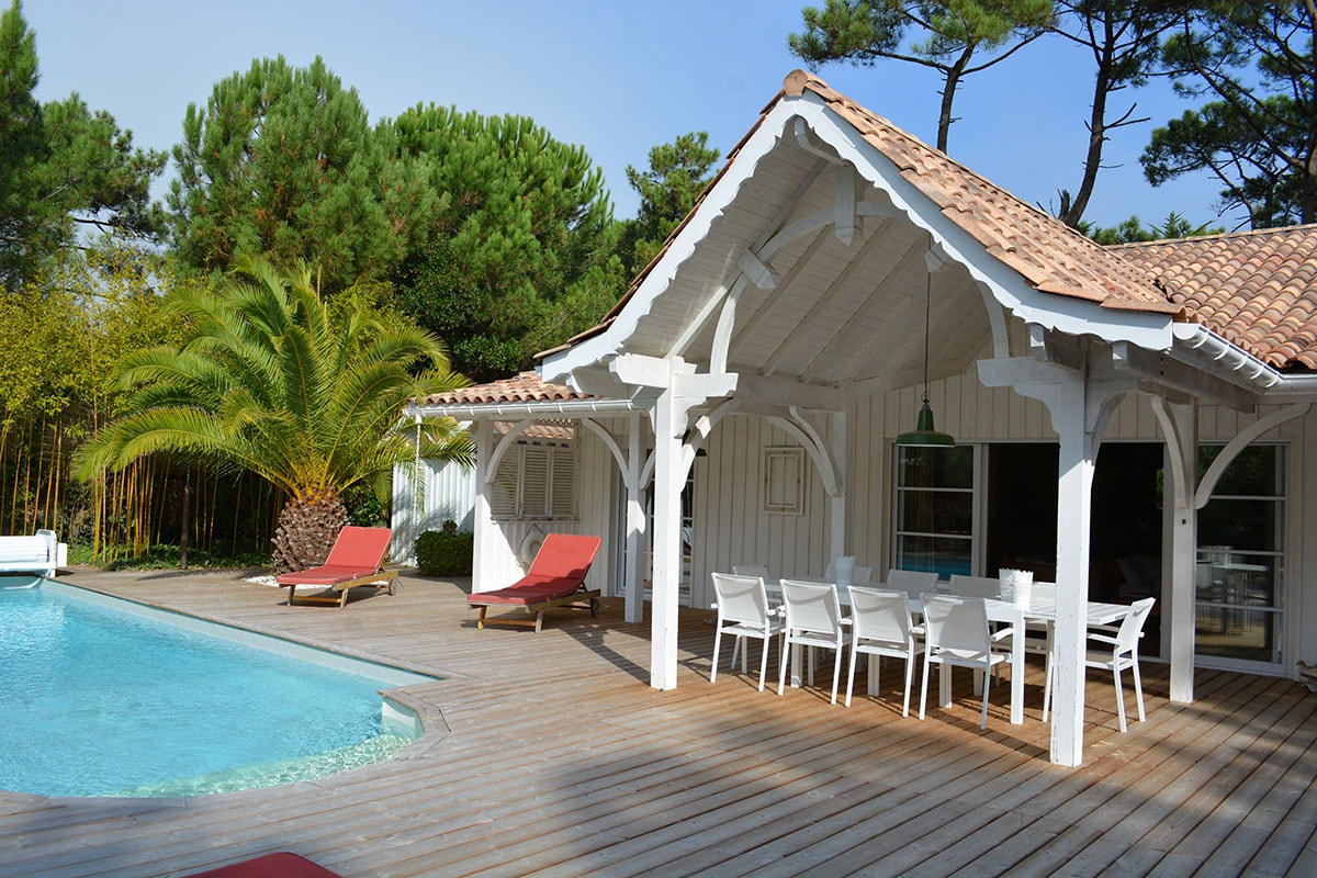 歡迎來到萊茲卡普費雷。 豪華別墅,依賴一層木質結構,提供超過172平方公尺的起居空間特別精緻的服務,坐落在1050平方公尺的景觀花園中心,溫水遊泳池( 12 x 3 ) ,從4月10日初到10月初。 泳池關閉時使用電動捲簾。 寬敞的220平方米露臺,配有躺椅、花園家具、燒烤。 在美麗的涼亭下,你可以在大桌子旁享用美食