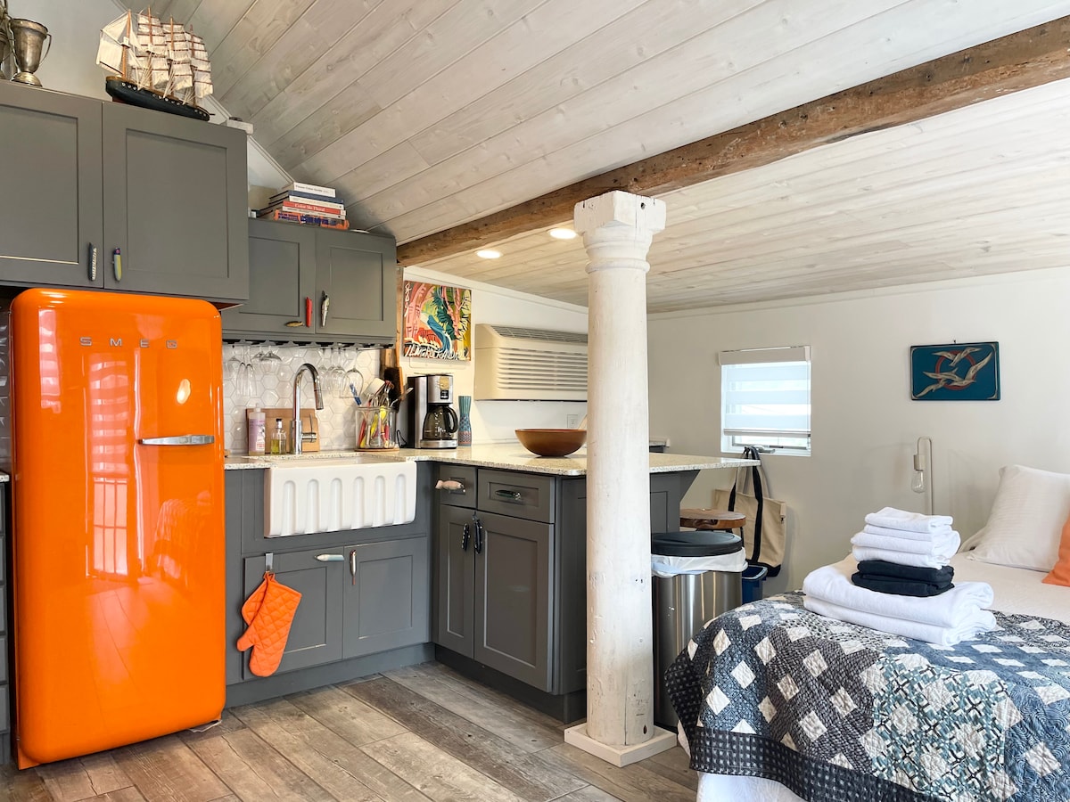 單間公寓小屋,距離Newcomb Hollow Beach 300碼,距離Gull Pond私人海灘500碼。全套浴室、中央暖氣和空調、迷你冰箱(帶獨立冰櫃)、微波爐、Keurig咖啡機、WiFi、電視、有蓋門廊、小露臺(帶沙發)。