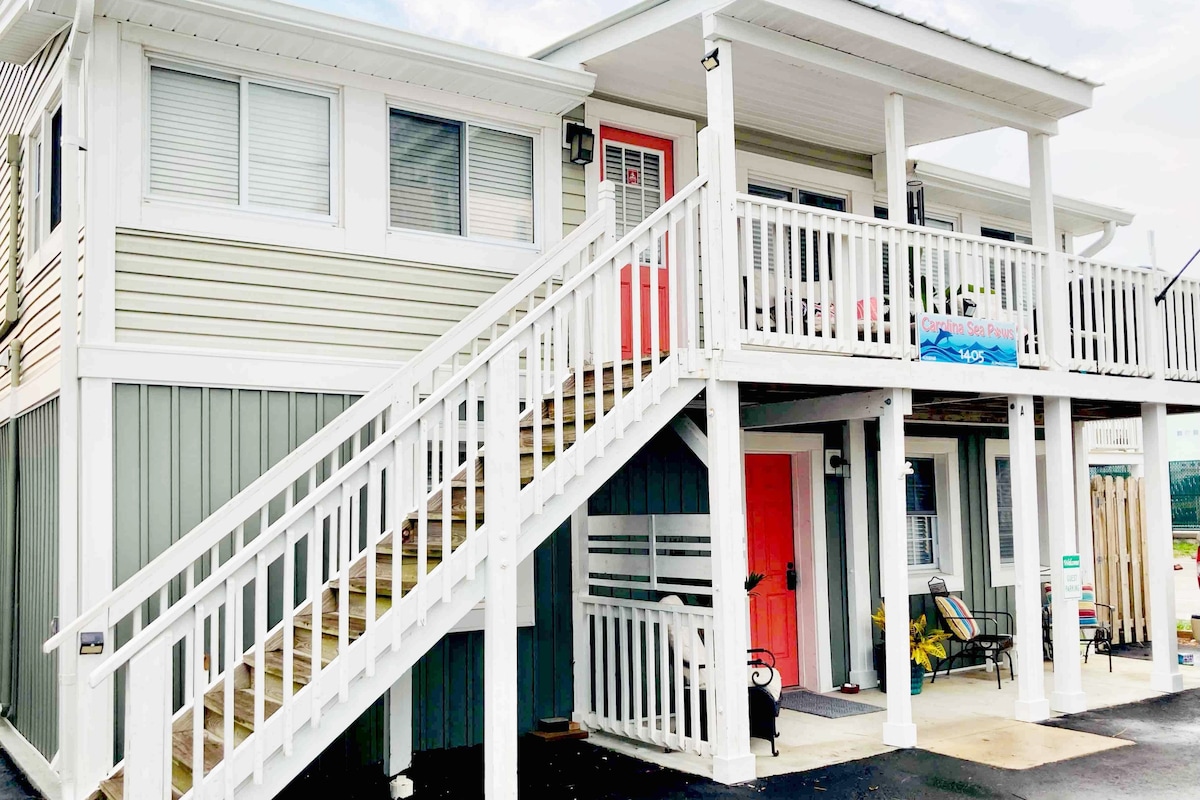 只需30步即可抵達卡羅萊納海灘(Carolina Beach)、陽光和沙灘、衝浪的海浪和日出的美景。 您距離North End Pier & Grill 3個街區,距離歷史悠久的木板步道1英里。在那裡,您可以購物、用餐、觀看煙花、租用槳板或在湖邊觀看家庭電影。 在海灘度過一天後,在有圍欄的後院享受一場Corn-hole遊戲,配有烤肉、H/C私人室外淋浴、火坑、露臺和搖椅、風帆和氛圍照明。每個人都有很多樂趣!