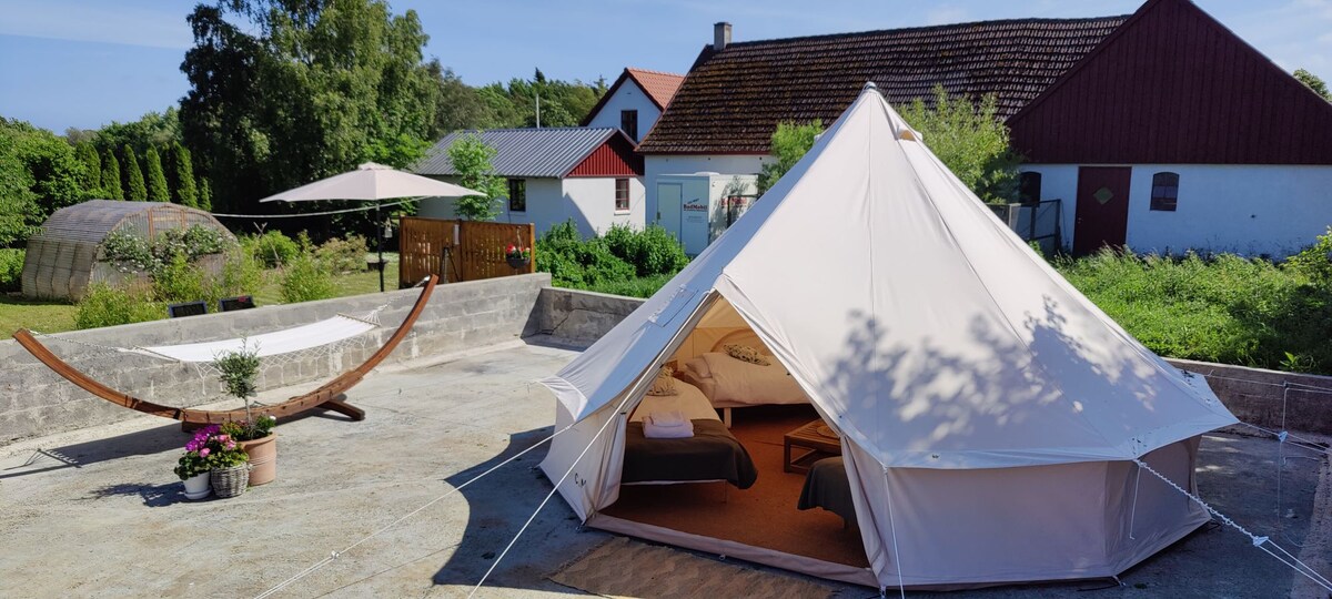在擁有200年歷史的農場草地上的美麗豪華露營帳篷中享受大自然和寧靜,坐落在Paradisbakkerne和Svaneke附近的風景優美的區域。 探索我們的菜園、雞舍和花園。 帳篷設備精良,配有雙人牀。 帳篷旁邊有一個戶外廚房,提供您在火上烹飪所需的一切設施。 可使用農舍內的私人廁所和溫水淋浴間,以及帳篷旁的室外淋浴間(冷水)。