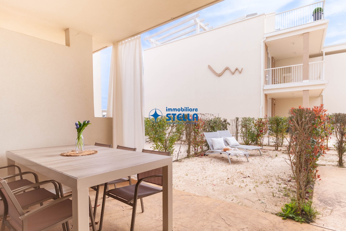 Nuovissimo App.to fronte mare giardino e piscina.