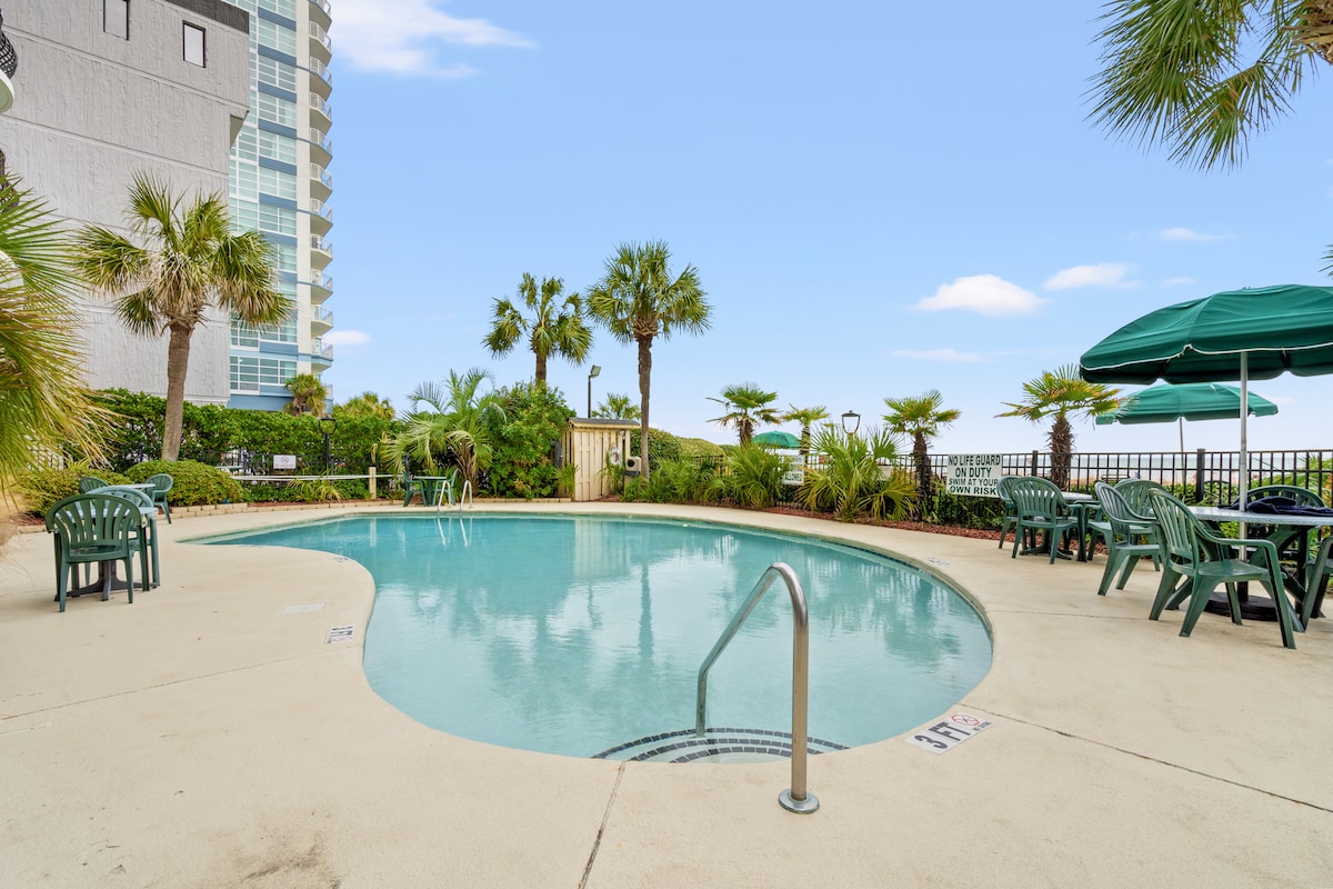 歡迎來到您的默特爾海灘度假屋!入住這間位處默特爾海灘中心地段的公寓,到哪都方便!距離海岸線僅10分鐘,可輕鬆前往海灘和主要購物中心和景點。所有設施和服務都在現場,包括3個室外游泳池、1個室內游泳池和一個網球場。入住靠近River Oaks高爾夫球場,享受Myrtle Beach的一切!