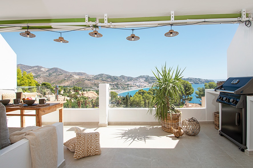 Tuhillo Seaview Apartment with spectacular uninterrupted sea views and the added advantage of a front-line communal pool and landscaped gardens. It has 3 bedrooms, 2 shower bathrooms and capacity for up to 6 people. It is located in the much sought after area Carabeo of Nerja, and within easy walking distance of all amenities, Balcon, Burriana and Carabeillo Beach.