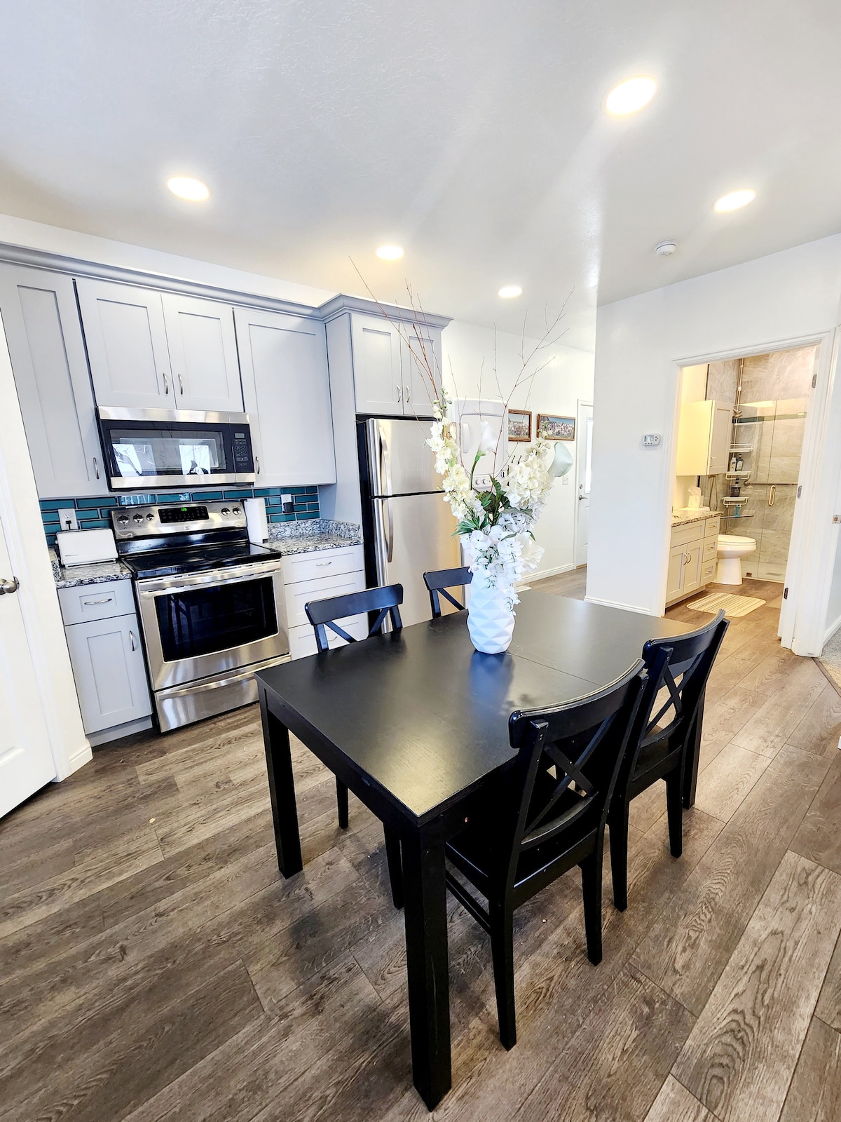 Picture yourself unwinding in the hot tub after a day of adventuring or enjoying an evening by the firepit. This 4-bedroom oasis is in the heart of downtown Price! Perfect for families, friends, or groups, this gorgeous home has it all! Enjoy the spacious fully equipped kitchen, high-speed Wi-Fi, smart TVs, washer & dryer, arcade, BBQ, & backyard patio. Local attractions, restaurants, bars, & shops are within walking distance! Book now for an amazing stay that your group will love!