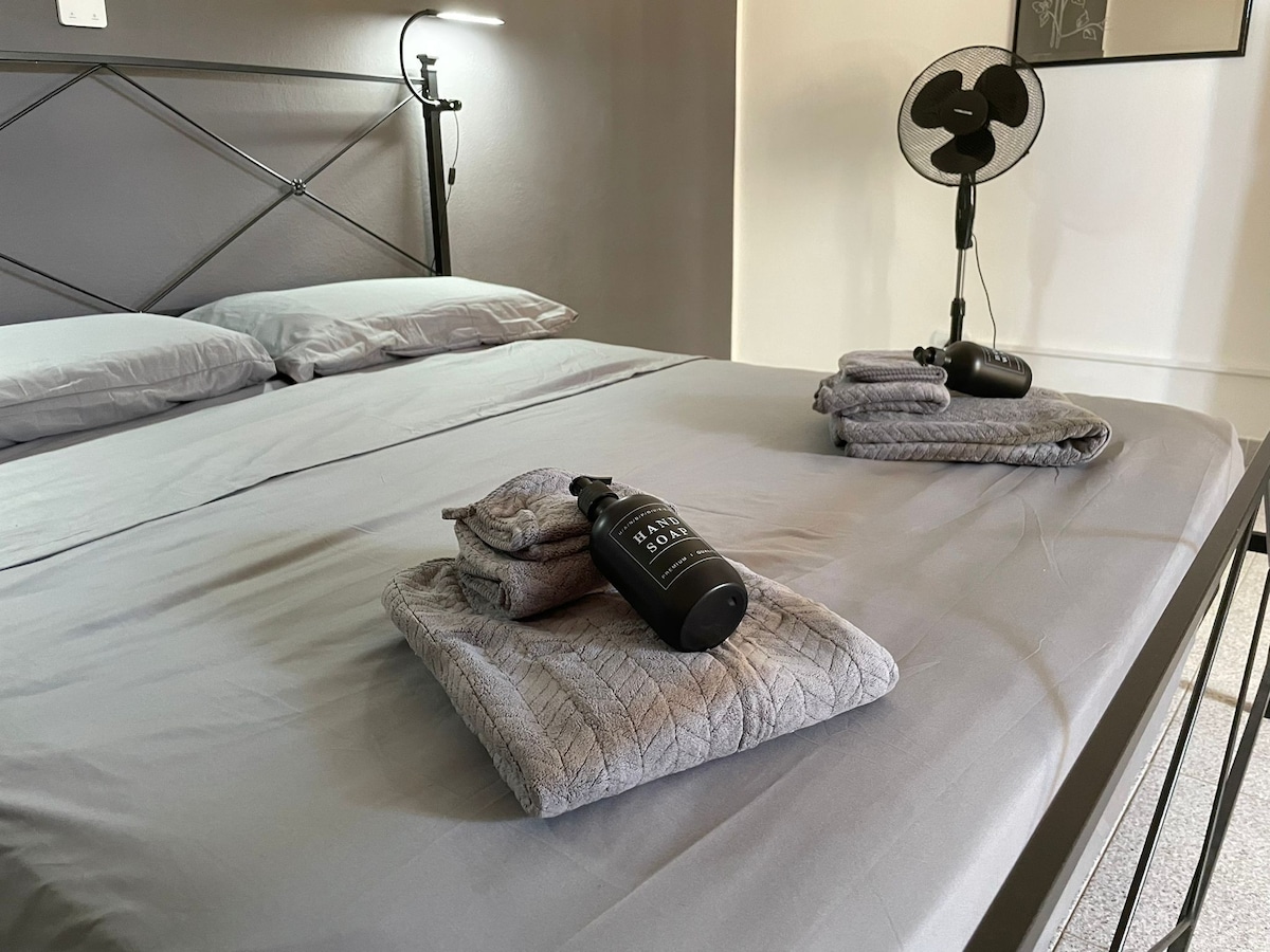 位於市中心的浪漫空調單間公寓,配有私人停車位。它由開放空間組成,配有雙人沙發床和早餐區(迷你吧、洗手盆、微波爐、咖啡機、水壺、無爐子)、帶淋浴的浴室、吹風機、電視、床單、毛巾和免費洗漱用品。所有窗戶都配有防蚊網。