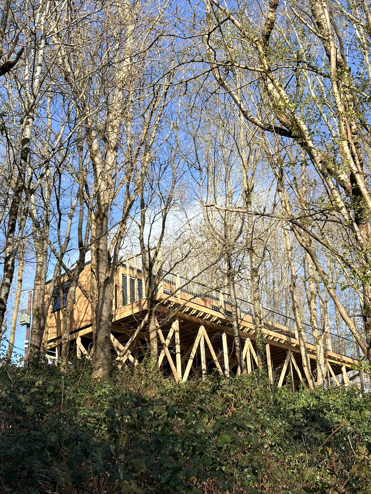 As you enjoy the short buggy ride down to the far end of our woodland you will be astounded when you come across our beautiful woodland cabin set in the treetops. You will immediately feel relaxed as you immerse yourself in the surrounding nature. Lounging chairs on the decking provide the perfect place for your morning coffee listening to the birds sing and soak away your stress in the wood fired hot tub then cosy up in front of the log burner and enjoy the tranquility of the woodland.