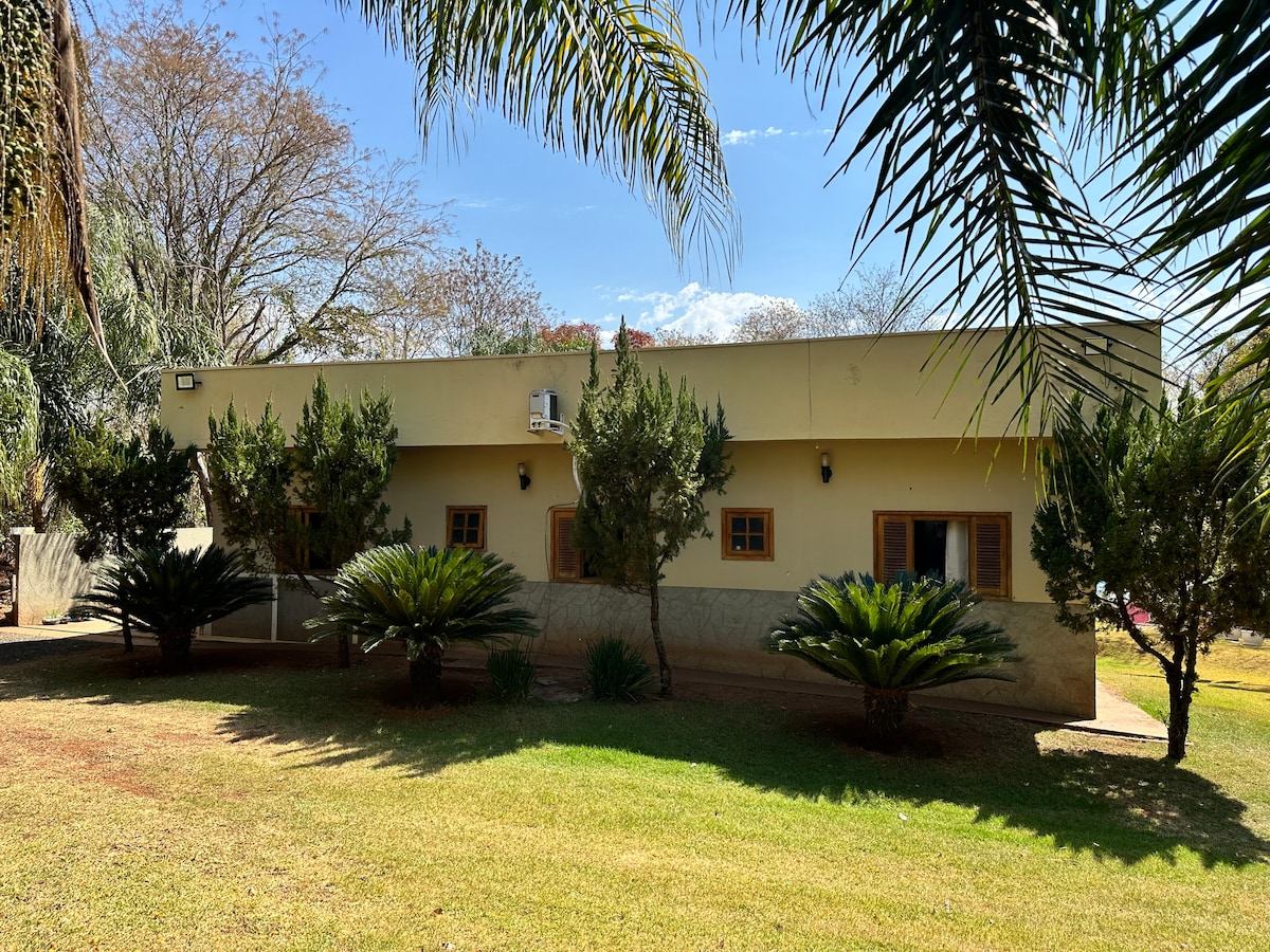 Casale Lazer區域,空間可供休閒,聚會,洗禮,一般來說是派對。 該空間有2臺冰箱,包括瓦斯爐、燒烤、遊泳池。 2間配備空調的臥室 1間室內廁所 室外區域有1間浴室 泳池內有1個淋浴間 1個帶瀑布和水力按摩的泳池 全廚房用品 全套餐具包,包括(第3個玻璃杯、30個盤子、30把叉子和30把刀) 8 mesas 27把椅子 1張大裁紙桌 攪拌機、電視、家庭劇院。