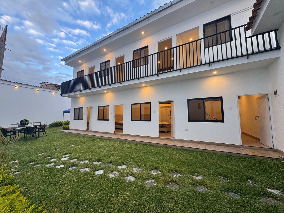 Nuestro alojamiento combina comodidad y calidez para ofrecerte una estadía única. Cada habitación ha sido diseñada con camas confortables, baño privado, televisión y mobiliario funcional que aseguran tu visita. Lo que hace especial a nuestro espacio es su amplio ambiente para relajarte después de tus excursiones, compartir en familia o simplemente disfrutar de la tranquilidad de la ciudad. Gracias a su ubicación céntrica, tendrás a pocos minutos restaurantes, mercados y servicios.