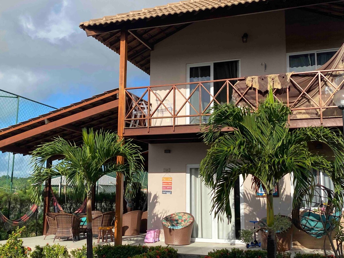位於私人海濱旅居內的2間臥室,配有24小時保安,私人Sítio Recanto Feliz。 可直接前往海灘,位於卡內羅斯海灘(Carneiros Beach)的最佳地段。 Aconchegante和超級高昂的精神。 美妙的露台,私人燒烤。 您走進房源內的短途小徑,在大自然的綠色植物中,直到到達海門。 海濱區域設有桌椅和遮陽篷,為這間旅居的旅人提供服務。