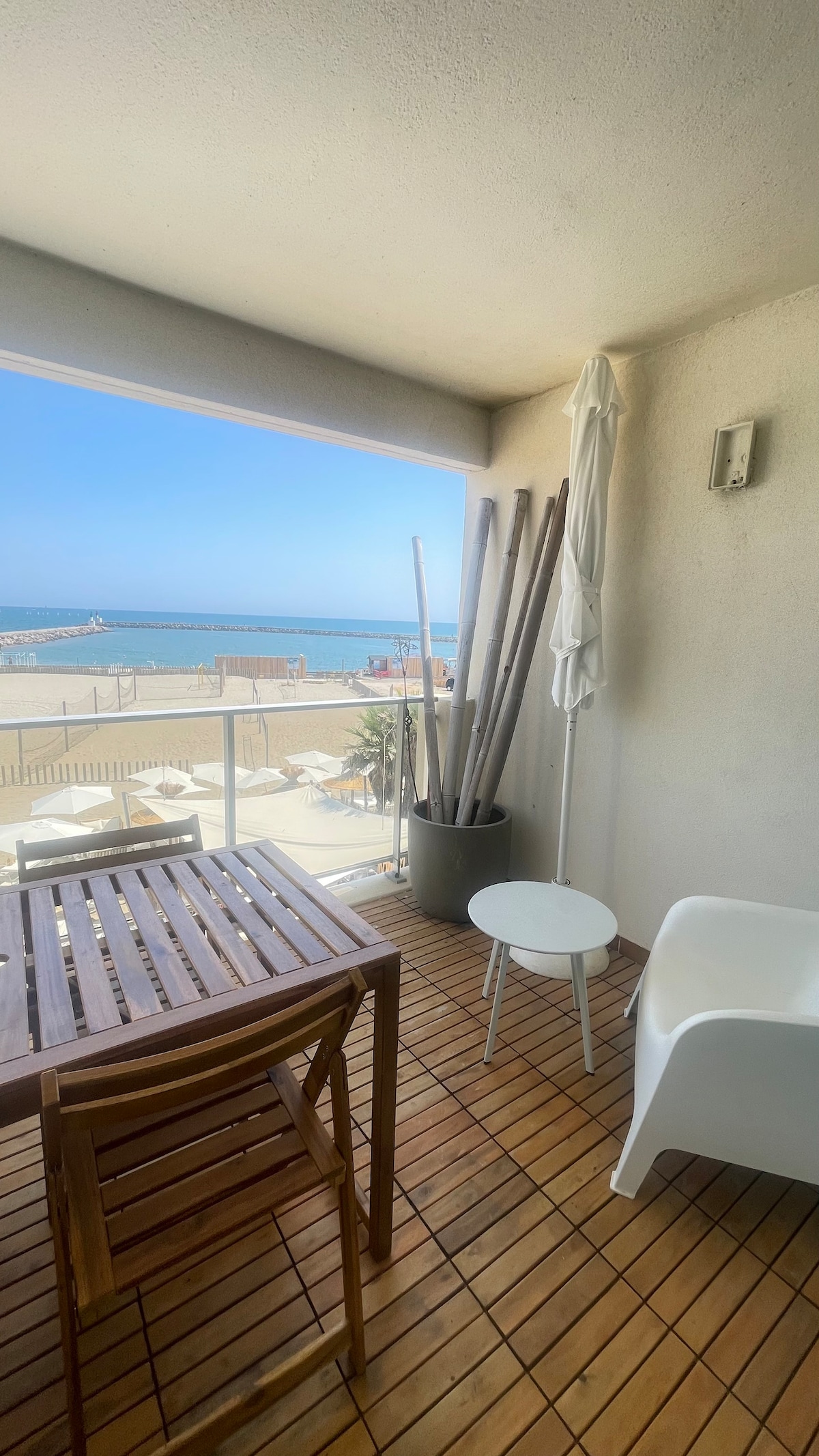 Bienvenue au Studio DUNE, votre cocon de détente à 50 mètres de la mer. Vue sur l’étang, climatisation, Wifi fibre, cuisine équipée : tout a été pensé pour votre confort. Profitez d’un espace moderne et lumineux, idéal pour un week-end à deux, un séjour en famille ou un déplacement professionnel. Plage, port et commerces accessibles à pied pour un séjour sans voiture à Carnon. Linge de maison et serviettes de bain fournis