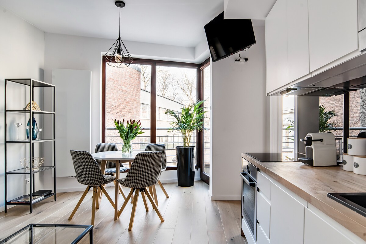 我們提供一套40平方公尺( 430平方公尺)的空調公寓,配有露臺。位於高標準建築的二樓,配有電梯。 公寓包括: -配有沙發床和配有Netflix的電視的客廳、 -設備齊全的廚房, -配有大床(63吋x 79吋)的臥室, -有大型淋浴間、廁所、吹風機、洗衣機的衛浴。 舊城區的便利位置: -主廣場( 4分鐘)、 - Kazimierz ( 15分鐘) , -瓦維爾皇家城堡( 15分鐘) , -主要火車站( 7分鐘)。