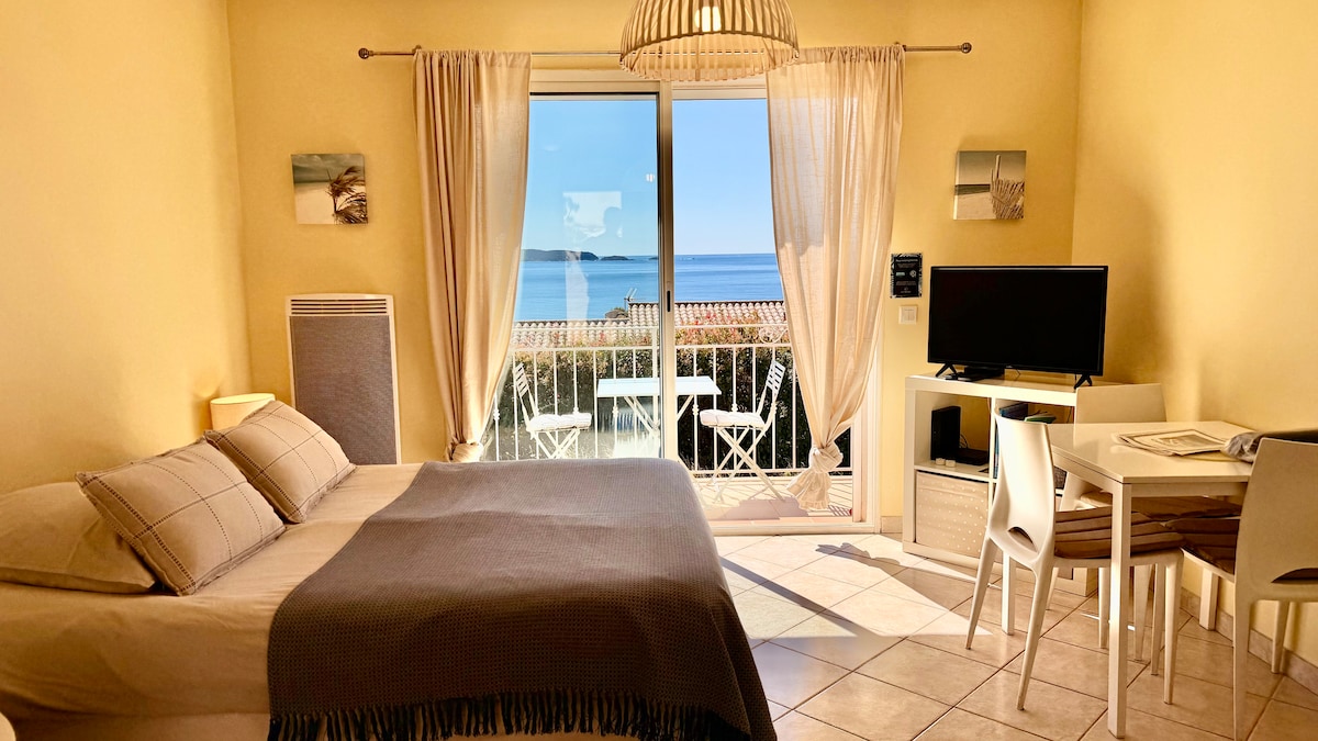 小型公寓,適合2人入住,翻新,有一間臥室,一個面向漂亮海景的舒適露台,游泳池位於公寓腳下的住宅內。 距離海邊800米,步行5分鐘即可抵達港口和村莊,住宅內有停車位。 設備齊全,配有單車房。 我會為您提供所有正確的計劃,以充分利用我們的小天堂和對面的島嶼。 請隨時查看您收到的正面評價。 待會見