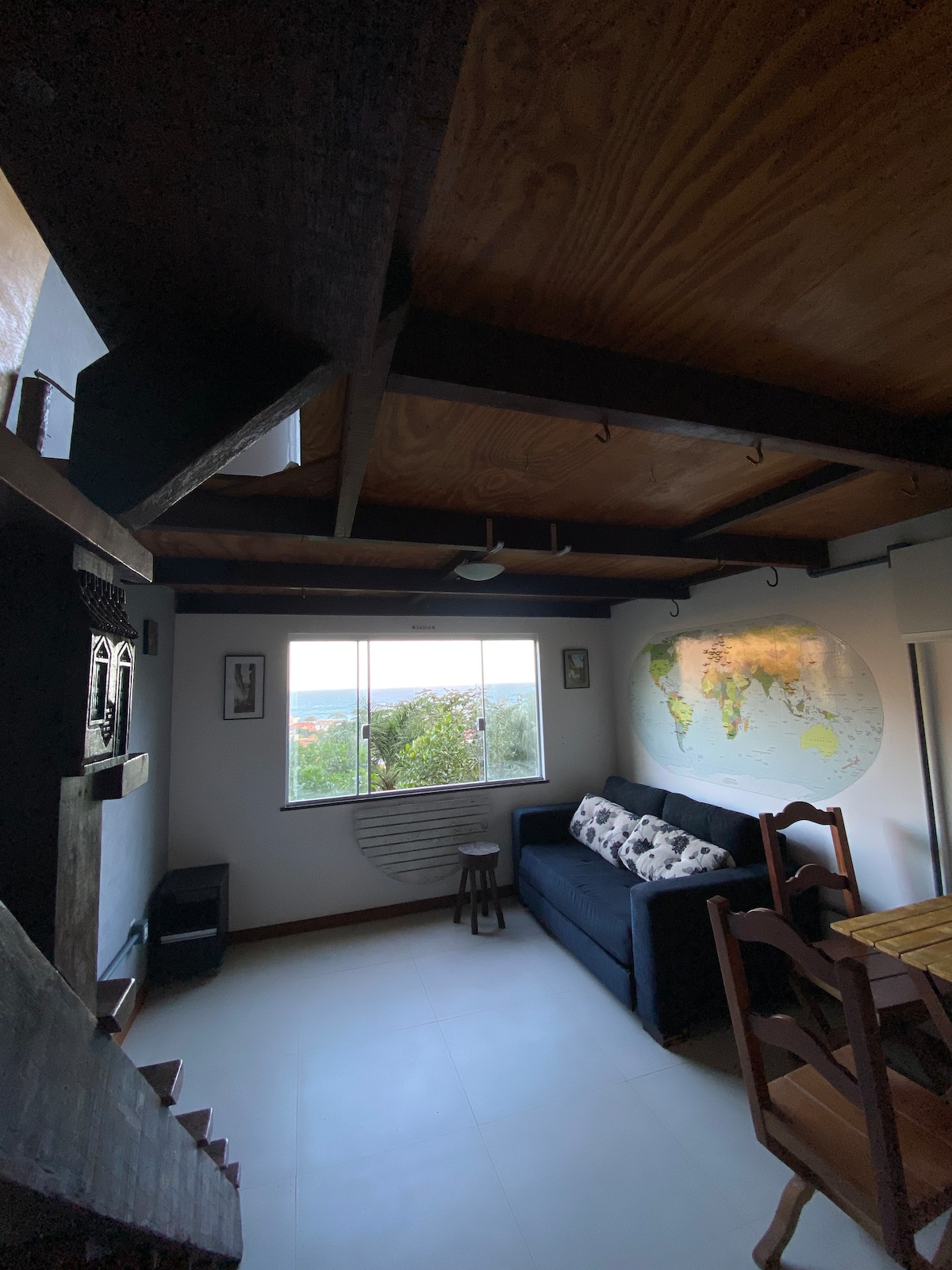 The stylishly decorated loft features an open concept with a wooden divider separating the bedroom from the living room and kitchen. It has 2 TVs, one in the bedroom and one in the living room. With a comfortable double bed, many windows bringing in natural light, a kitchen integrated with the living area, and a spacious L-shaped balcony with a surreal view of Icaraí Beach. Fully equipped, it's 200m from the beach, close to pharmacies, a market, restaurants, and the most famous street in Icaraí.