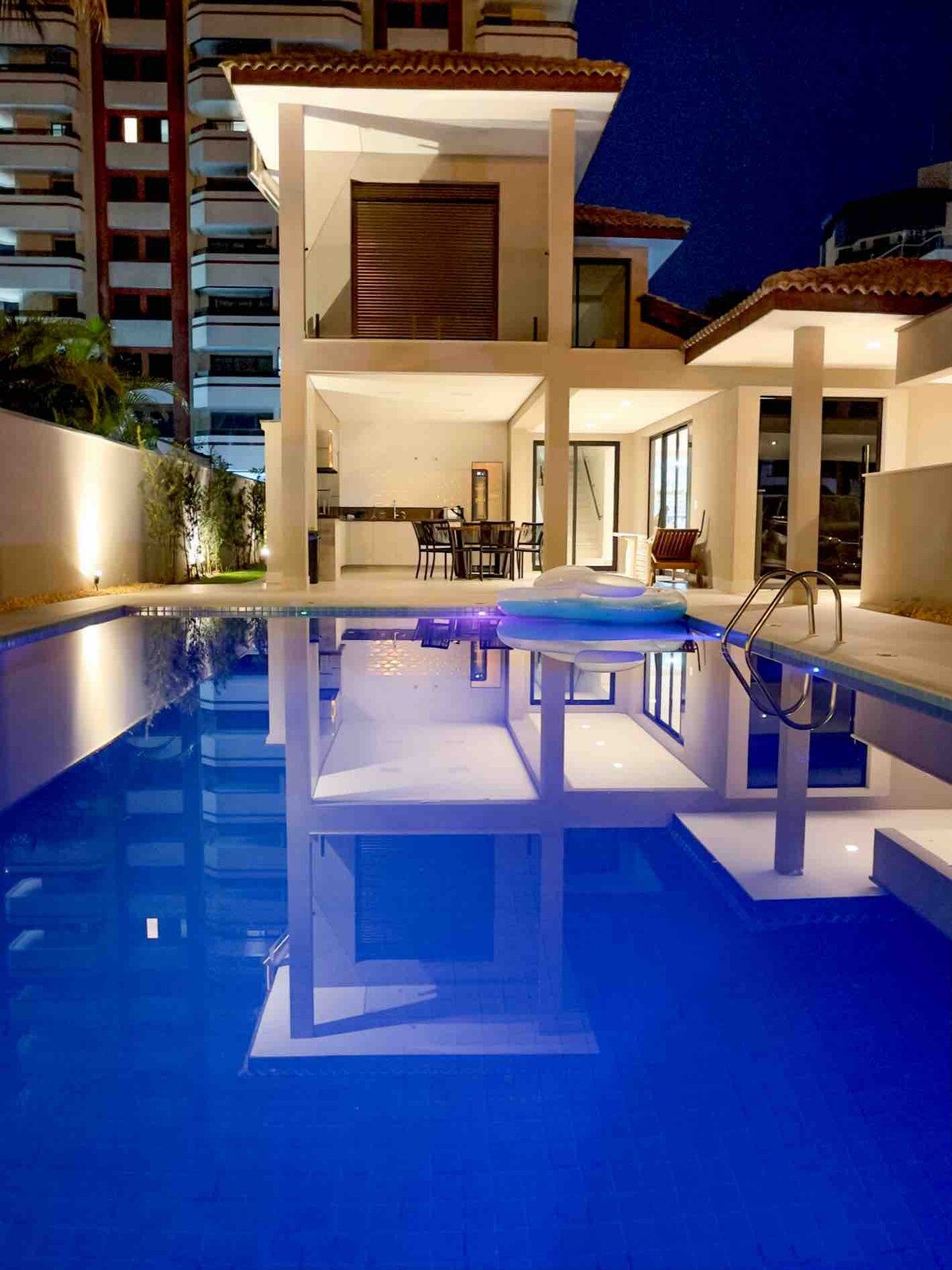 非常靠近海灘(30米) 與家人一起來到這個舒適的地方放鬆身心,聆聽海的聲音 *這不是在里維埃拉* 📍房屋位於Jardim das Canções社區的Praia da Enseada ,毗鄰SESC。 ✨安靜的街道,交通不多 🏠全新現代建築 🛋️舒適的裝飾 🍽️設備齊全的廚房和燒烤區 💧臭氧和太陽能加熱泳池☀️ 冬季陽光明媚,最高可達26°C。 深度: 1.40公尺 🚐 我們不接受 VANS。