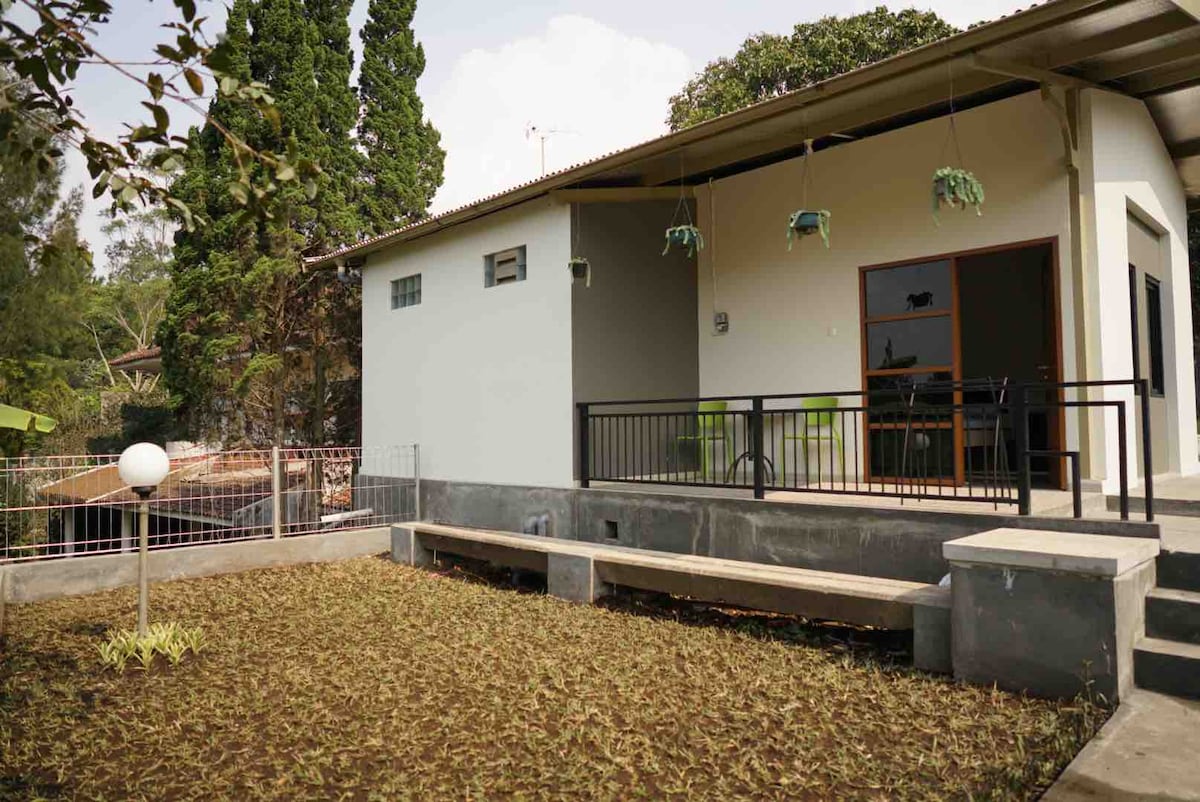 # Private villa/house This place have 1 bungalow room surrounded by koi ponds (40cm deep) and separated from the main building, semi outdoor kitchen, comfortable backyard, the whole area has good sun access with large glass and suround by secure fence Location right in front of the punclut tourist area (cafes & restaurants dago bakery, boda barn, sarae hills, sudut pandang, and so many more) # we are pets allow here 🙂, max up to 3 small pets or 2 medium-large pets (well trained)