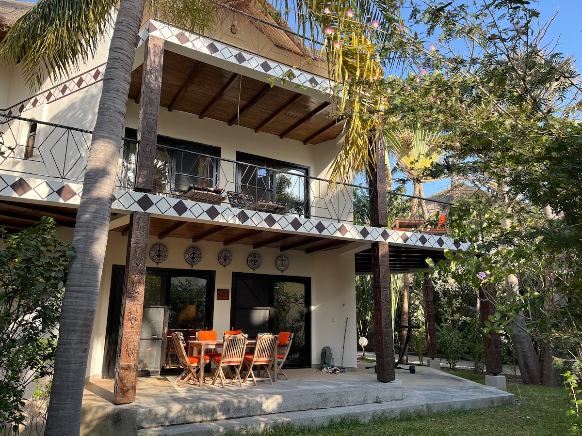 這是一棟位於叢林中的房子,靠近大海,距離村莊不遠(1.5公里),非常寧靜美麗,有一個大而乾淨的花園。您可以在這裡找到所需的寧靜。這是一個新房子,配有所有服務,讓您住得好且舒適。如果您喜歡原創旅行,您會喜歡的! !與該地區的鄰居認識和分享知識是理想的。