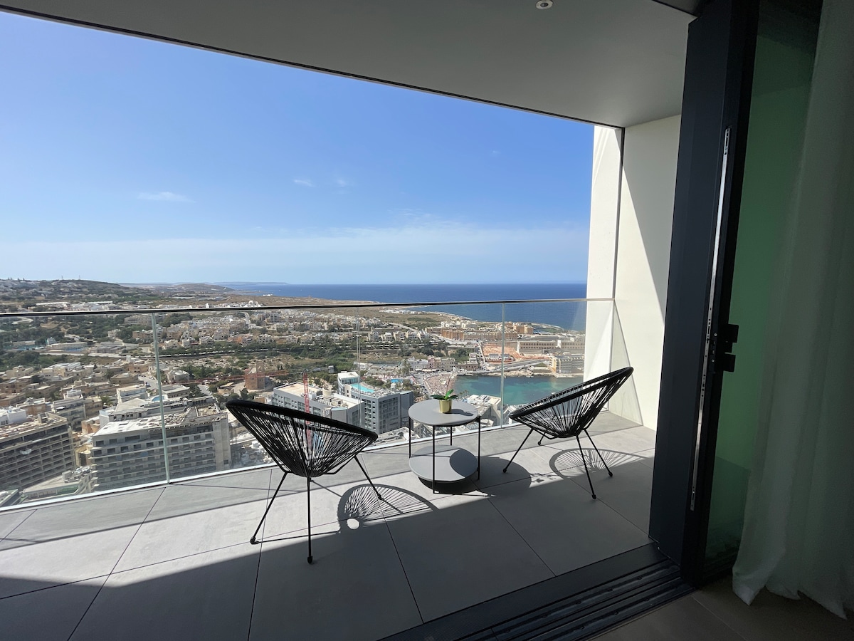 Welcome to your luxury sky-high escape in Malta’s architectural masterpiece. Perched on the 27th floor, this ultra-modern apartment offers unbeatable panoramic views of the Mediterranean, from Portomaso Marina to Spinola Bay and Balluta Bay, creating an unforgettable backdrop for your stay.  Whether you’re here for romance, business, or a Christmas getaway, this home combines stylish design, comfort, and a prime location in vibrant St. Julian’s, one of Malta’s most desirable neighborhood.