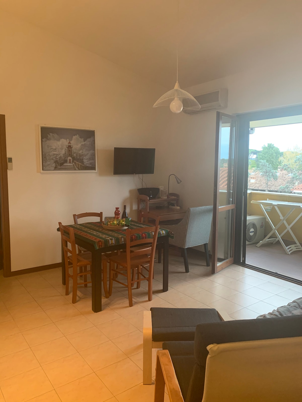 Halfway between the city center and the sea, the 35 sqm apartment is located on the raised ground floor of an apartment building in a very quiet and peaceful area of Rome. Excellent base for visiting Rome, the sea and Ostia Antica, a few minutes walk from the metro stop. The apartment consists of a living room with kitchenette, a bedoom and a bathroom with shower. Two bikes available for our guests. Important: Tourist Tax already included in the total amount (6 euros p.p per day).
