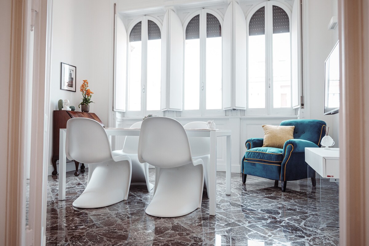 位於巴里市中心的明亮且精緻的公寓,可俯瞰著名的佩特魯澤利劇院的自由建築。距離卡沃爾大道 (Corso Cavour)、斯帕拉諾路 (Via Sparano) 和其他購物街僅幾步之遙,距離老城區四個街區,距離海濱兩百公尺,距離車站六百公尺,是探索城市寶藏的理想之地,也是在普利亞的豐富景點之間度假的理想基地