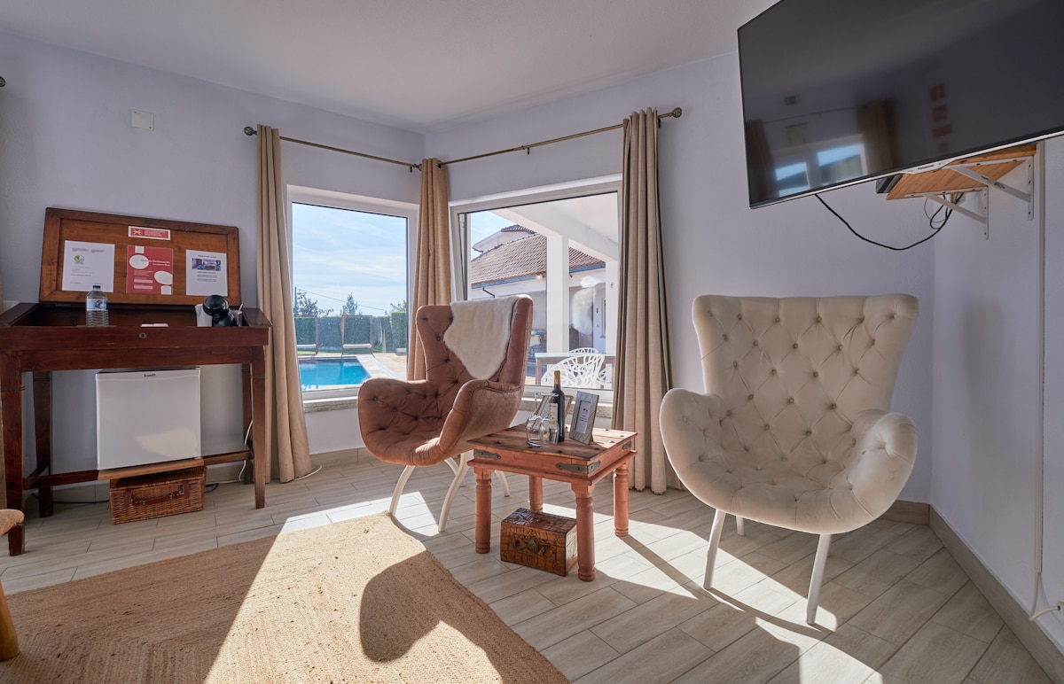 Are you looking for a group location with bar and pool in the Green Heart of Portugal? Then you are at the right place at A Casa Amarela. A Casa Amarela is a small vacation resort with two 3-room appartments and a studio and can accommodate up to 16 guests. Besides that the apartments can be rented separately, the entire location can also be rented as a group location.