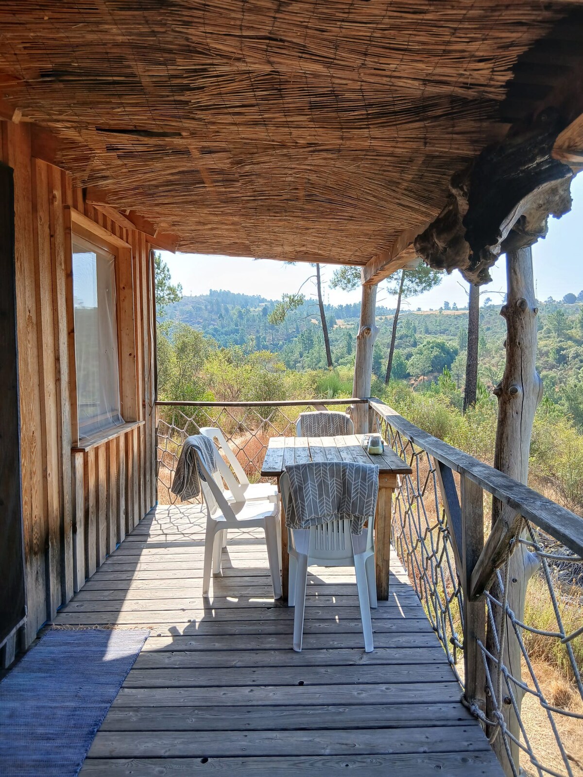 Magical mountain views, enjoy the beauty of central Portugal & national park Serra da Estrela. Watch the stars at night from the Hottub XL! Perfect for a romantic getaway or enjoy the nature with your kids. The tinyhouse is situated in the middle of nature on our small “wellness” resort ZevariClub & has a lot of privacy. A lovely sundeck but also enough shade from the trees. A luxury bathroom, nespresso & a mini-fridge. For cooking use the container bar/ kitchen with amazing viewing decks! 🤩