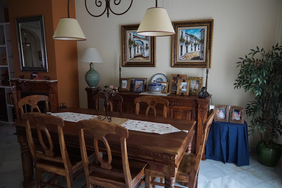 位於塞維利亞省瓦倫西納德拉康塞普西翁的公寓。距離大城市僅幾分鐘路程,位於一個安靜的住宅區,四周環繞著樹木和大自然。 位於一樓,沒有電梯,有兩間臥室,一間配有雙人床,另一間配有兩張床,可以輕鬆合併。兩間全套浴室、帶沙發床的客廳、全套廚房和帶遮陽篷的露台。公寓旁邊有停車位。 非常適合參觀塞維利亞,然後回來休息。