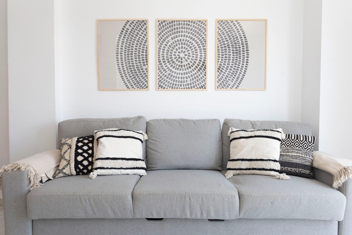 非常明亮和愉快的公寓,位於El Puerto de Sta Maria中心(距離Romerijo 1分鐘路程)、酒吧和餐廳區域。 它擁有非常現代化的裝飾,並提供所有舒適性。 它由2間臥室(主臥室配有雙人牀和a/a , 2a配有2張單人牀)寬敞的客廳,配有沙發牀和a/a、餐廳、電視、WiFi、陽臺、配備VITRO的廚房、洗衣機、微波爐、Nespresso咖啡機、帶淋浴間的浴室。 距離公共停車場3-5分鐘路程。 開車10分鐘即可抵達海灘。