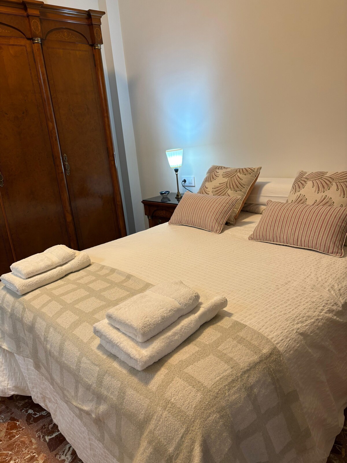 The restoration and decoration of the flat was finished on sept 2017, with grate open spaces and super high ceilings (4 metres high) its and oasis of peace, thanks to the exterior glass and metal balconies that can be closed completely, and the wood windows that go from floor to selling on the outside facade. To the inside the flat overlooks a typical Spanish patio As you approach the house the main outside door to the building warns the visitor about the category of the building about to enter … passing a metal gate the patio is reach, a simple elegant spaced that provides light to the inside of the properties and cools down the atmosphere during the hot days, opposite the lift and to the right the stairs, the height of the ground floor is so huge that the stairs need three sections to reach the first floor flat (in today’s construction it would be a high second floor) As you enter the flat on your right and along the inside of the flat you have a wood and picture window overlooking the patio With two confortable bedrooms one with a balcony, both with, wardrobes, bed side tables with reading lights and 100% cotton bed clothing And two bathrooms one in suite with a bath and both with, shower and hot water on demand heated with city gas The kitchen is modern and gear up with top range kitchen equipment, and with all the necessary utensils for cooking a delicious meal, presenting and serving the food The sitting room has a, working table, library, two armchairs, big sofa and flat TV, is supper luminous thanks to the balcony and the window at the far end were the dining table seats The house has air conditioned in all rooms and Wi-Fi The building a private house on its day, was first renovated in 1999, and latter refurnished in September 2017, the main entrance at number 3 of Calle Reyes Catolicos and the back entrance at Calle Almansa The property has a beautiful patio and underground car park, with one car park space for the flat connected with a lift to the first floor of the building Is a peaceful residential building and will be appreciated to be treated on that manner The apartment is on Calle Reyes Católicos in the upscale Arenal neighborhood in Seville’s old town. Step out to shops, tapas bars, restaurants, and nightclubs. The town hall, cathedral, river, and bullfighting ring are just minutes away. Walking distance from the flat in less than 5 minutes, Plaza Nueva (Town Hall), the Cathedral, the river Guadalquivir, the bull fighting ring “Maestranza”, and the commercial streets, Calle Sierpes and Calle Tetuan and at the other side of the river Triana. There is a taxi rank by the building, the main bus station is less than five minutes’ walk From the airport, By taxi, there is a flat tariff to the city There is a bus service and two of its lines EA or 03 have a very convenient drop of From the train station, By taxy, should not exceed 10 euros There is a bus service and line 21 has a very convenient drop of By car, less than five minutes to ring road S30 From the flat you will be able to visit the city on foot without the need of a car or of public transport The car park system is not a rump but a lift that curries the car down, it is almost impossible to fit a big car into the lift, small and medium size car fit comfortably. Please try to rent a small-medium car!!. There is no problem with height, only with the width