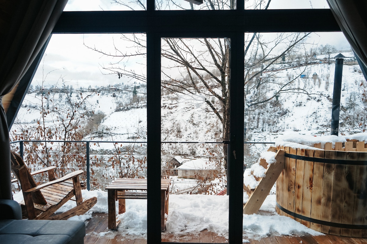 美麗的度假木屋氛圍公寓,可欣賞全景山景,位於新古道裏滑雪度假村中心,海拔2300公尺,雙人住宅。 極簡風設計、自然質感和壯麗景觀。 您可以欣賞古道裏山谷的壯麗景色和滑雪場,以及在熱水浴的同時欣賞令人驚嘆的日落。 山溪、不斷變化的天空、牧羊人羣和夏季夜晚令人難忘的雷暴。距離熱門的Kazbegi 40分鐘車程。