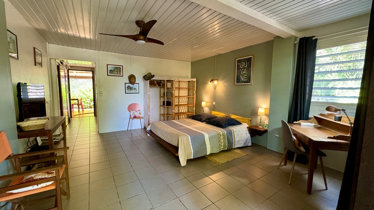 在這個安靜時尚的空間中放鬆身心。 這間公寓與相片相符,提供舒緩、安全和乾淨的環境。 入住是獨立完成的。 這個位於Cayenne和Rémire-Montjoly之間的郊區提供滿足住戶需求的服務(自助洗衣店、購物中心、海灘)。