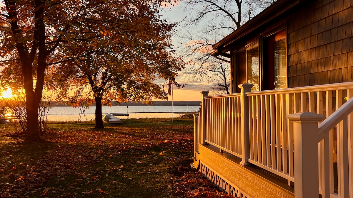 享受這間擁有4間臥室和2 1/2間浴室的壯觀湖畔別墅。 樓上閣樓區域和下層提供額外的睡眠空間,每個空間有2張日光床。 客廳沙發也是一張大牀。 豪華拱形廚房、壁爐、洗衣房...許多泊車位、碼頭、皮艇和新的熱水浴缸! 您會喜歡環繞著湖景的有蓋門廊。 位於「黃金海岸」……塞內卡湖( Seneca Lake )東邊……靠近許多釀酒廠、啤酒廠和日內瓦市中心