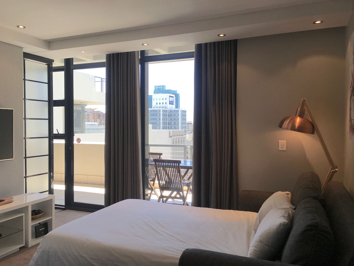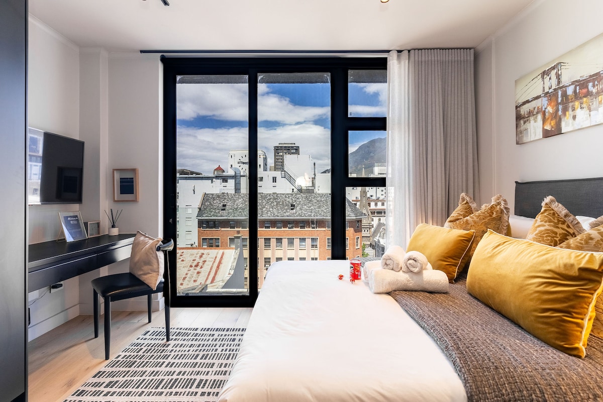 在長街較安靜的一端。 從陽台欣賞城市景觀,探索附近的綠色市場廣場、城市觀光巴士站、餐廳和酒吧。 距離CTICC步行10-15分鐘。 🛋️ 設備與服務 - 1間臥室 -舒適的沙發床 -大樓不會受到停電影的影響 - 高速Wi-Fi、智能電視 -乾淨毛巾、盥洗用品 -室內洗衣機 -免費停車位 24小時保全
