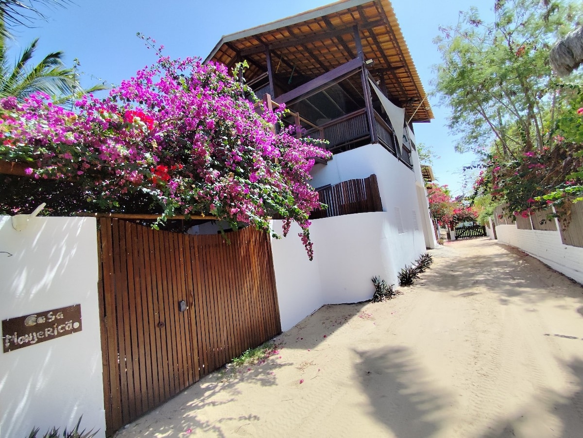 套房寬敞。陽台上有吊床。通風良好。一個特殊的地方。1張雙人床+ 2張單人床(雙層床)。 此套房位於附屬建築中,與其他4間套房共用。有一個設備齊全的共用餐廳/廚房。距離海灘不到100公尺。進入房間需要爬樓梯。 Icapui/Ce的Peroba海灘是一個非常原始的龍蝦漁村。非常適合放鬆身心,享受大自然。令人著迷,天堂般的。通過樓梯進出。最佳景觀。
