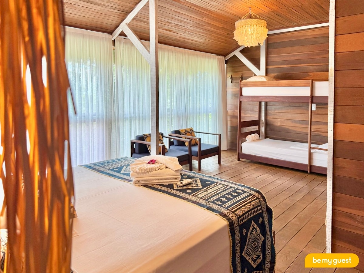我們在Vila Cajoá很高興能夠為您和您的全家在Lagoa do Paraíso提供無與倫比的體驗。Beija-Flor小屋配有燒烤架、吊床、空調、配備電磁爐的廚房、空氣炸鍋、咖啡機、三明治機、攪拌機,甚至還有蒸鍋。熱水淋浴。步行10分鐘即可抵達拉戈阿。這裡被稱為世界上最好的淡水海灘。