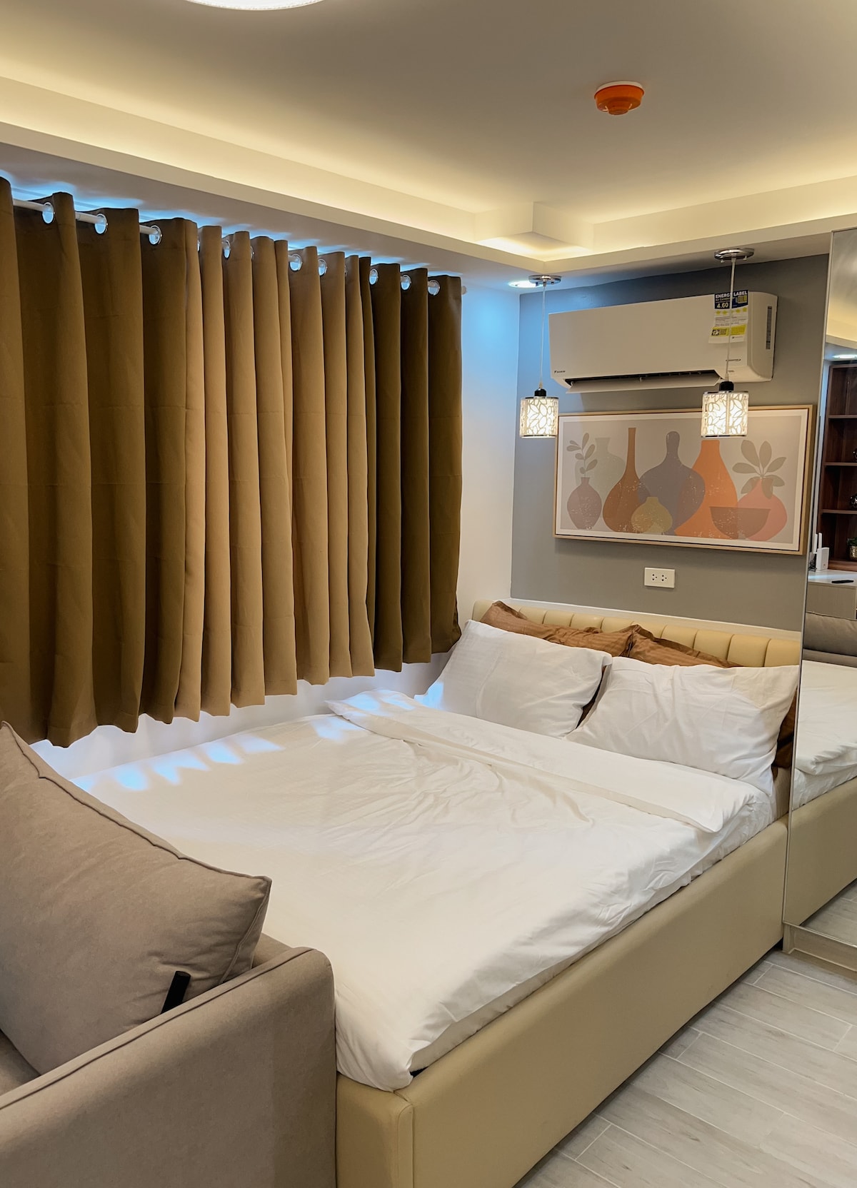 Stay at this Wabi-Sabi studio on the 30th floor of Horizons 101 in central Cebu City. With earthy tones, comfy linens, and warm wood accents, it’s got the perfect relaxing ambiance. You’ll be close to Fuente Osmena and have easy access to transportation. Ideal for travelers, couples on a getaway, or friends out to explore the city. Book your stay in this stylish studio today!