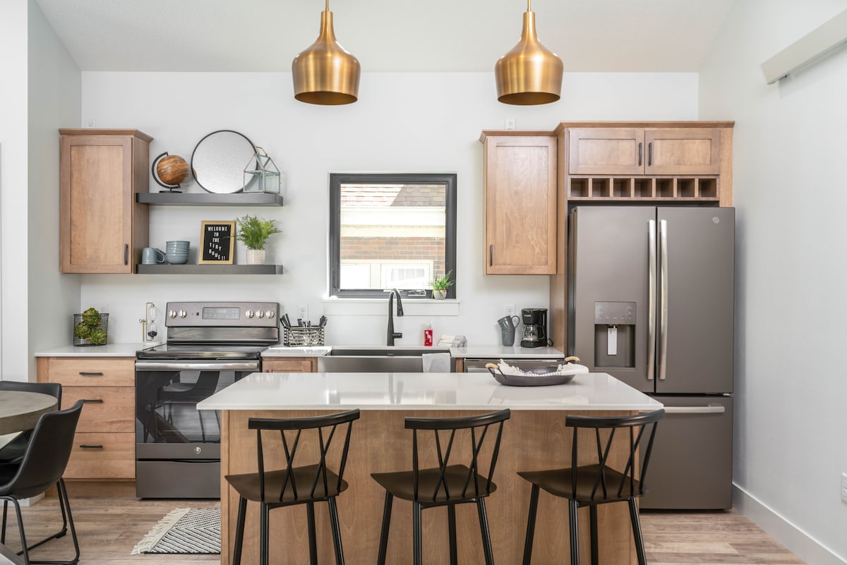 入住這間位於市中心的房源,享受時尚體驗。 全套一間臥室公寓,配有加大雙人床、客廳的沙發床和全套廚房/酒吧區域。 位於雪松瀑布市中心的完美位置,適合週末度假或長期住宿,距離主街和Overman Park活動僅1個街區。 私人泊車位,大樓主樓層設有投幣式洗衣機。 中央暖氣和冷氣以及冷熱水供應