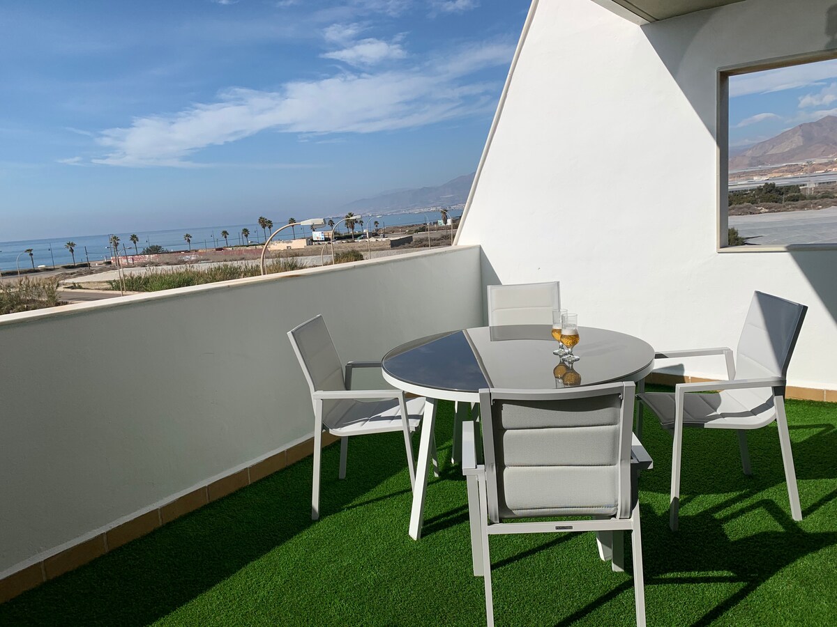 欣賞阿爾梅裏亞的所有阿爾卡薩巴的最佳景色。 入住一棟經過全面翻修和裝飾的傳統房屋,體驗尊重該地區建築的風格。 距離市政廳和典型的小吃酒吧和餐廳區域僅600公尺。 有自己的車庫和寬敞的房間。 在海灘度過一天後,您可以在令人印象深刻的露臺上放鬆身心,並在城市主要紀念碑的燈光下用餐。 空調和WiFi 2-3輛中型車的停車位!