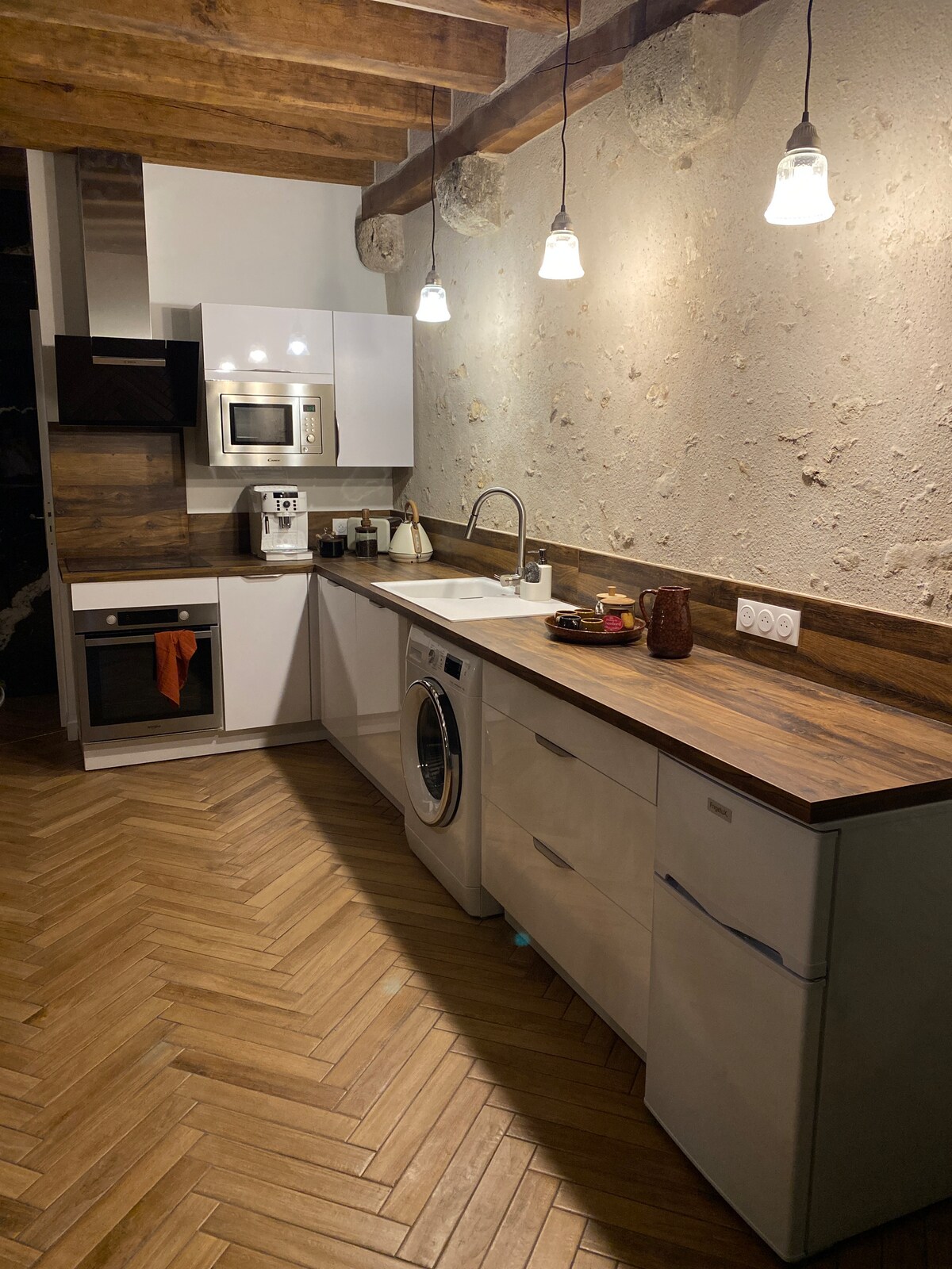 在盧瓦爾河畔的昂布瓦茲 (Amboise) 中心,享受獨特而浪漫的假期,這裡是一個非典型且真實的空間(16 世紀時在岩石中挖掘而成),擁有設計師的裝飾和現代化的設備。 多層樓的閣樓風格:浴室和按摩浴缸/按摩池,讓兩人盡情放鬆。客廳配備 65 吋智慧電視和高性能音響系統。睡眠空間和設計床,讓您舒適入眠,最後是用餐區。
