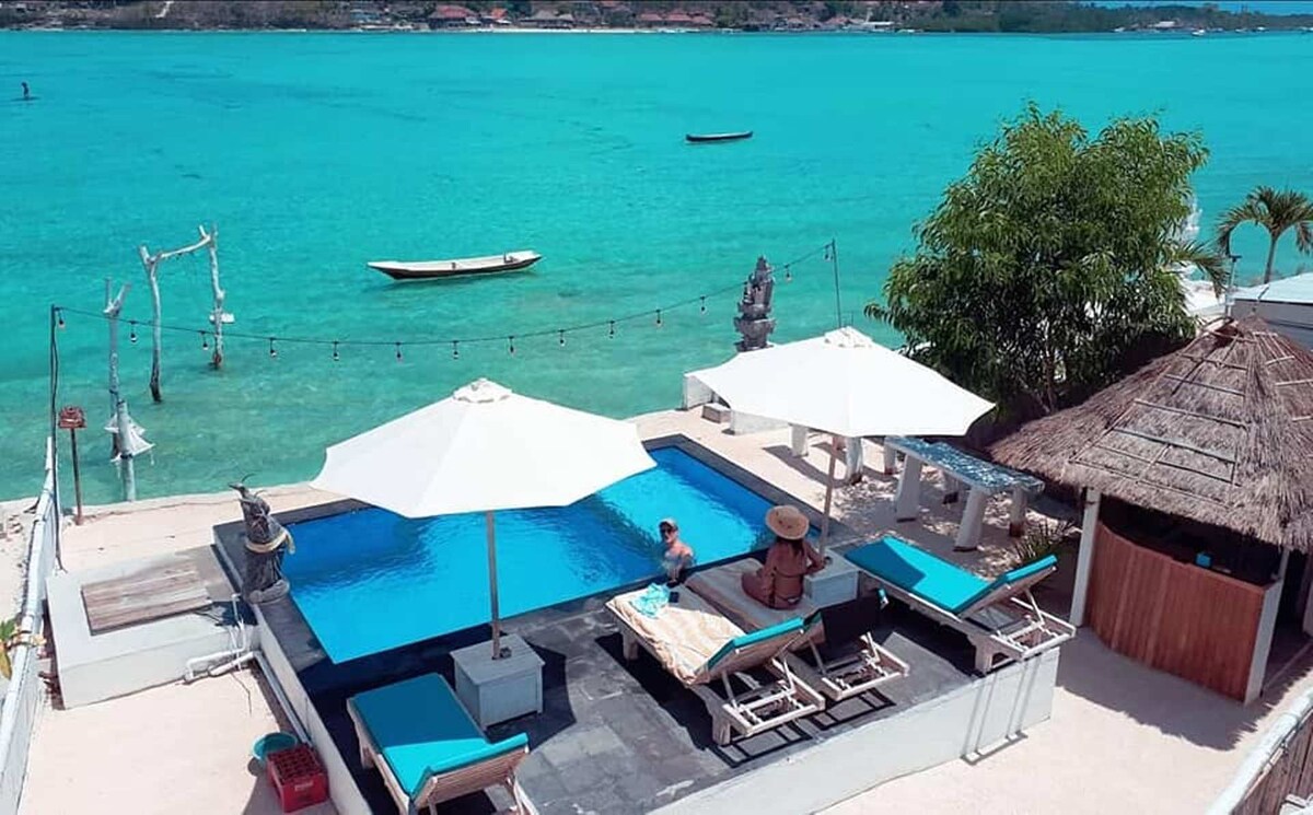 Lembongan Seaview是最靠近海灘的最佳酒店之一 我們的旅居下方亦有小型私人海灘,海水清澈。 可俯瞰海灘的無邊際泳池, 在泳池旁悠閒小酌,品嚐冰涼啤酒和美味雞尾酒, 我們很樂意協助你安排; -浮潛 -潛水 -衝浪 -釣魚 -巴納納船 -踏板車可供出租 -島嶼之旅 我們非常樂意為您服務,並竭誠提供最佳服務。