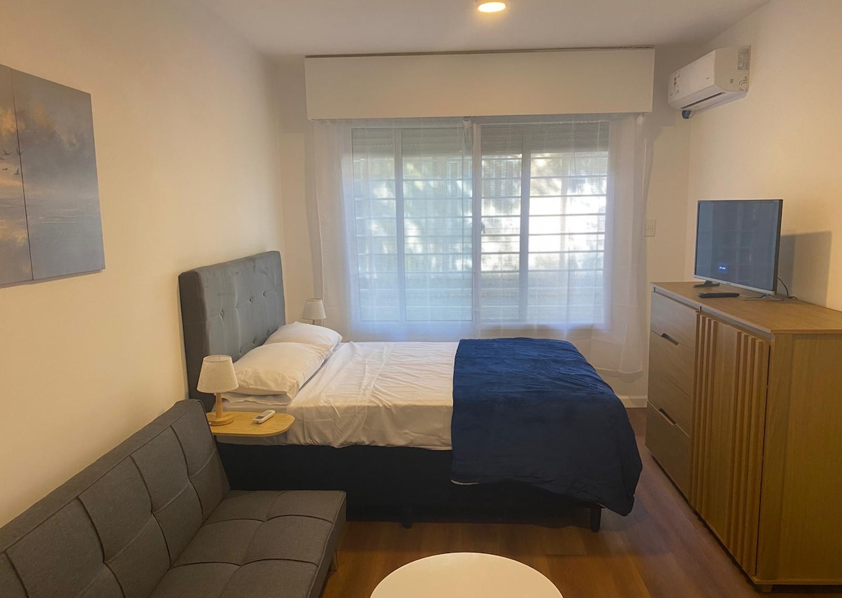 你一定會依依不捨。 我建議你閱讀旅人的意見。 無可挑剔、明亮、安靜、設備齊全的單間公寓。 它會讓你覺得自己是第一個使用所有東西的人。 大樓設有洗衣房、健身房和屋頂,配有躺椅和桌子,僅限旅人使用。 地理位置優越:距離海灘一個街區;靠近各種商店、餐廳和購物中心。 路邊停車位
