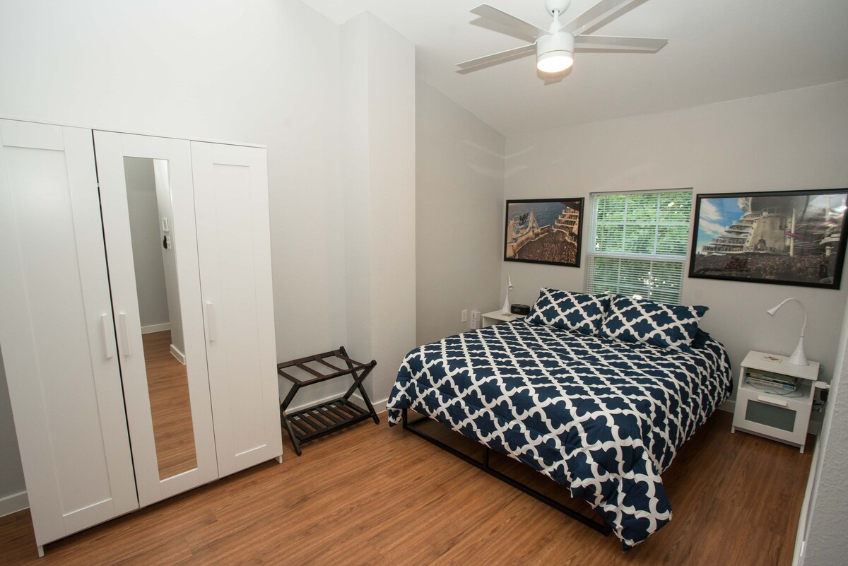 A new, clean, and organized, smart-home automated, modern condo in East Downtown Austin. Spacious, tall ceilings, queen-size bed, and a full-size sleeper sofa. It is a trendy location with great bars and restaurants. Easy parking. Extra half bath. High-speed Fiber Wi-Fi. Sonos sound system and large-screen TV. Perfect location for Downtown, UT-Austin, Lady Bird Lake, and Festivals. It is ideal for two people, but it can accommodate four.