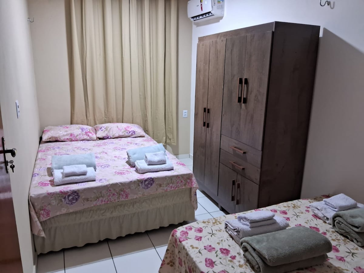Apartamento em condomínio fechado, próximo da rodoviária e aeroporto. No apt: - Wifi de 500 megas -Vaga de garagem -Ventilador de teto -Chuveiro elétrico - Smart TV 32 com Netflix, Amazon , Max , Prime, Disney e Globoplay incluso -2 quartos com duas camas de casais. - Roupas de cama inclusa - Sabonete e toalhas. - Cozinha completa - Mercadinho24 horas