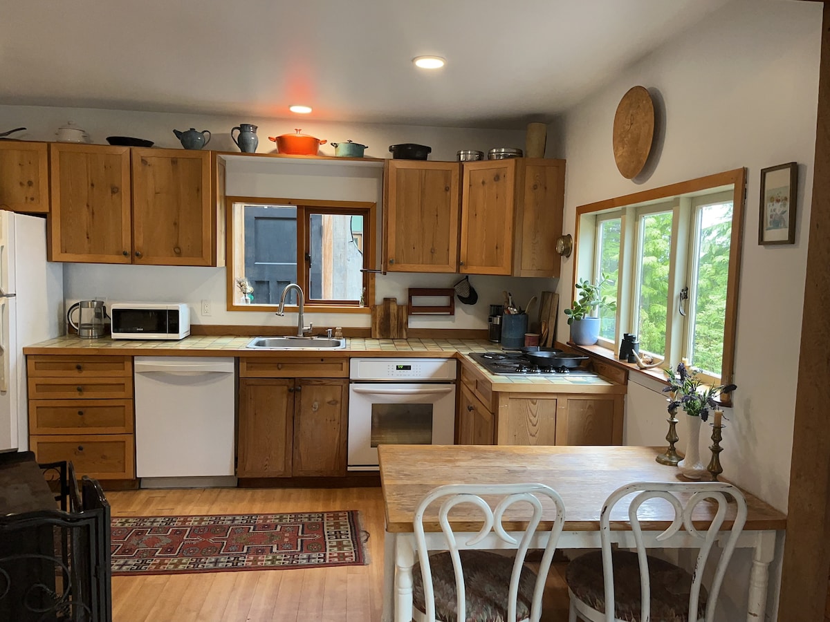 位於Bella Coola山谷陽光明媚的Saloompt的可愛客用住房。 步行不到10分鐘即可抵達Bella Coola和Saloompt河和古老的森林步道。從大窗戶可欣賞180度山景。 房子位於果樹之間的私人環境中,有自己的戶外休息區和燒烤。 該物業是一個混合有機農場市場花園、雞和牧場豬,因此根據季節可能會有肉、雞蛋和農產品。