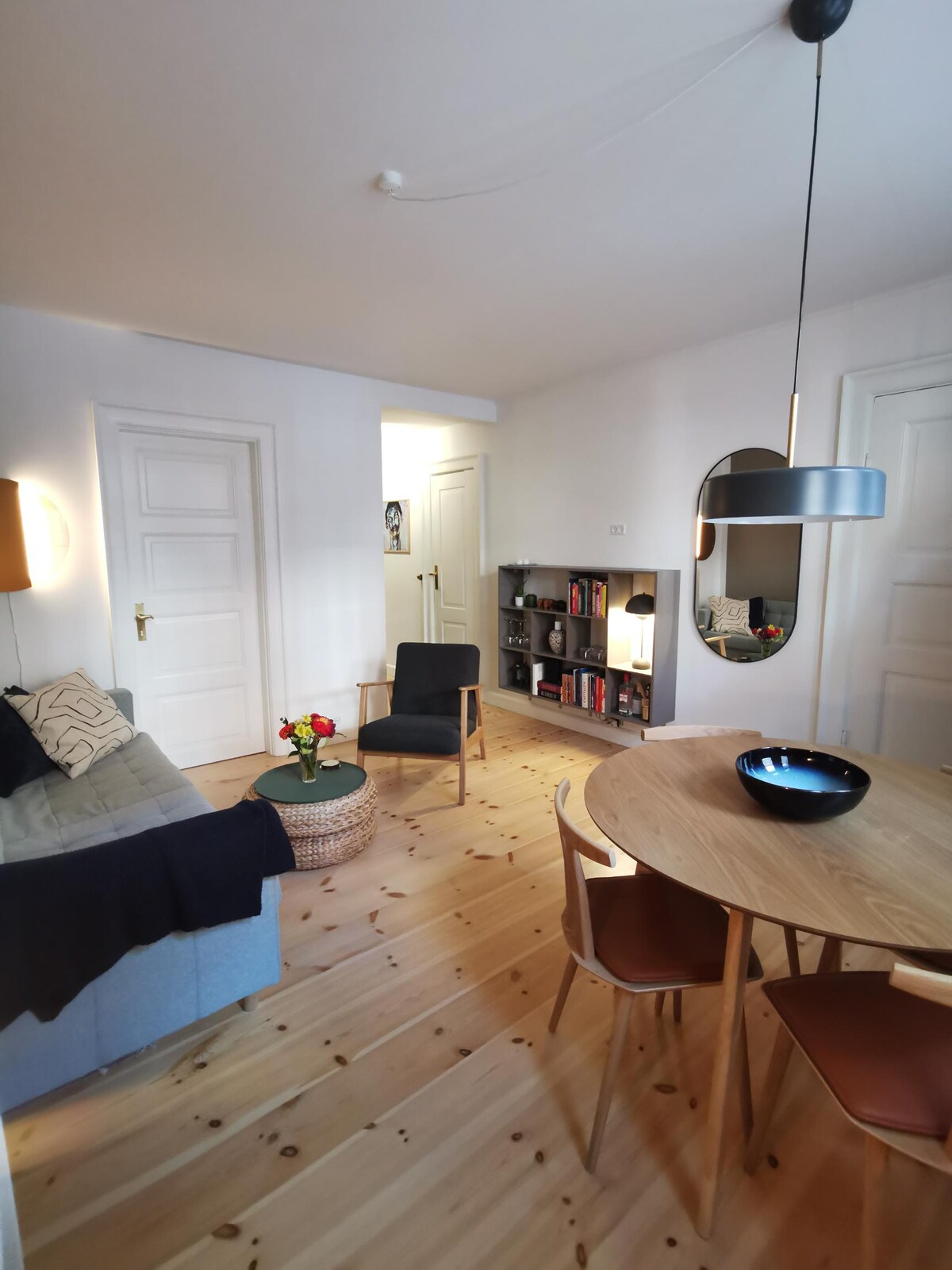 非常寬敞和時尚的公寓,設備齊全,適合長期住宿。 公寓位於傳統舊建築的二樓。 它有高高的天花板,客廳裡有裸露的磚牆。 •步行街- 1分鐘 •社交餐飲- 1分鐘 •巴士站-靠近公寓 •雜貨店-就在前面 •火車站- 10分鐘 •停車場-就在前面 •附近-藝術博物館、Spinderihallerne、Sheesha、Bryggen購物中心、海灘、鹿公園、圖書館 如果你是首次使用Airbnb,請提供身份證明文件。