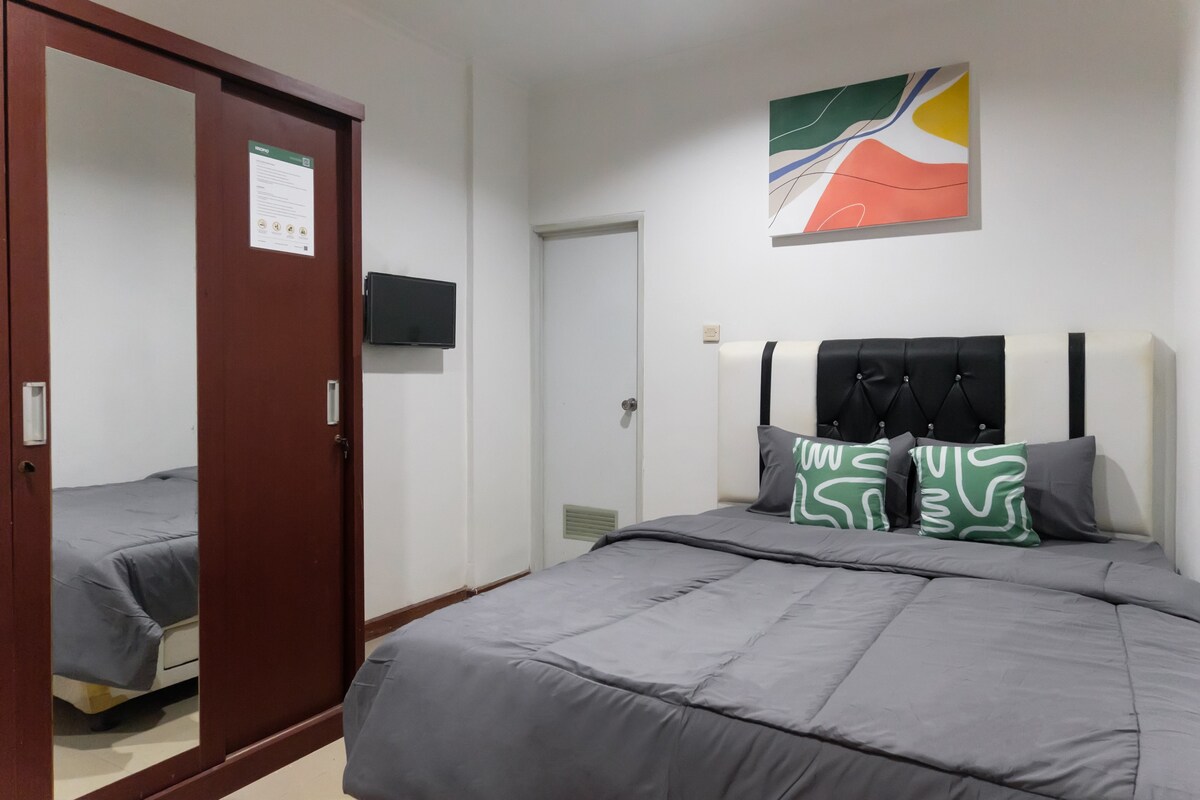 全新的客房,配有雙人床、空調、智能電視、辦公桌、衣櫃、熱水器。 位於Mangga Dua購物區和JIEXPO活動場地附近。 我們的設施停車場可停放電單車、電梯、廚房、公共空間、免費飲水機、雪櫃、WiFi、洗衣機。