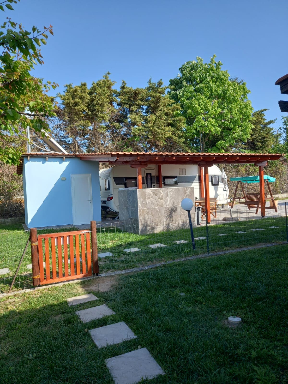 Μονοκατοικία με 2 τροχόσπιτα. Το κάθε τροχόσπιτο έχει δικό της μπάνιο και κουζίνα ξεχωριστά, επίσης το κάθε τροχόσπιτο έχει δικιά της ψησταριά. 5 λεπτά με τα πόδια από την θάλασσα.